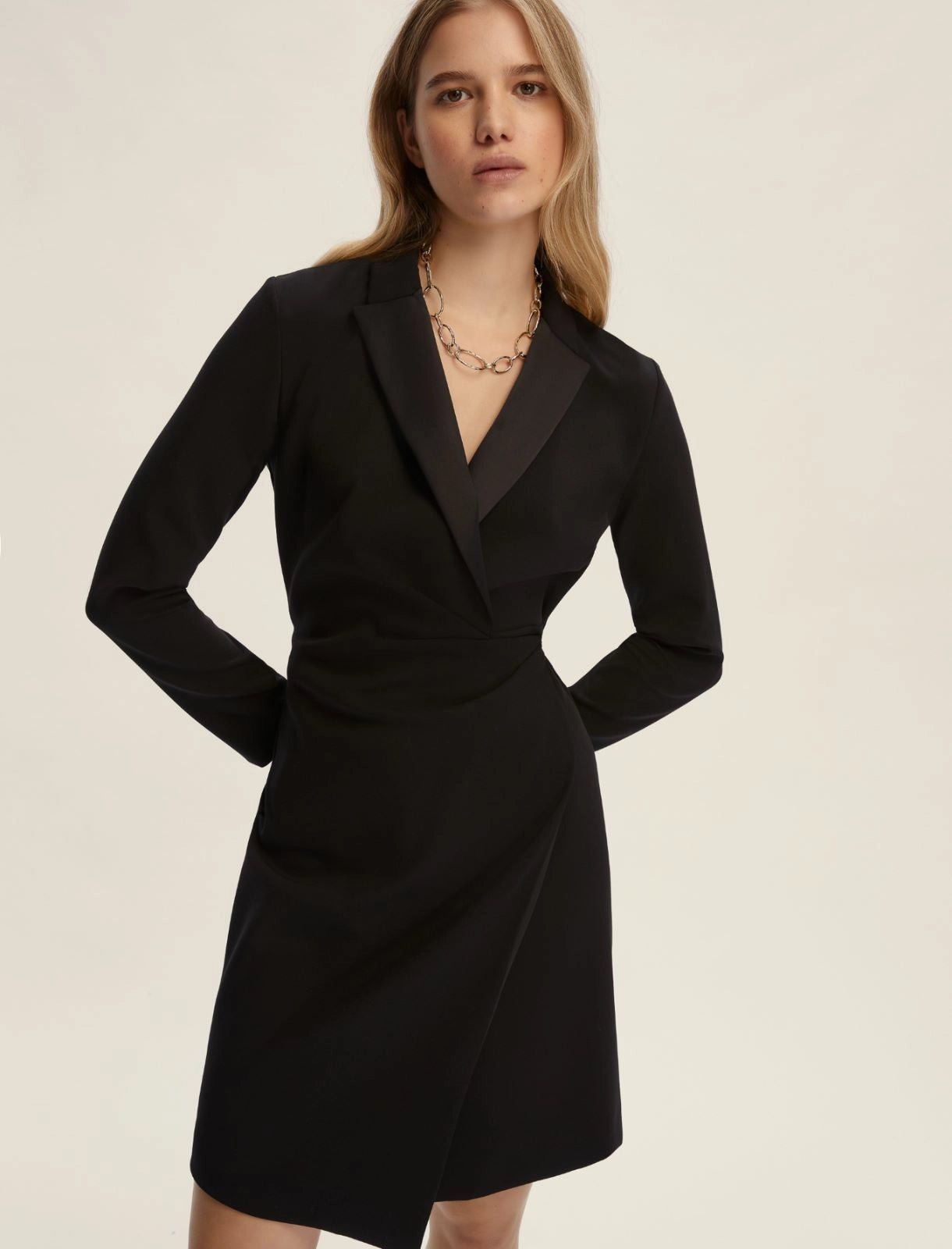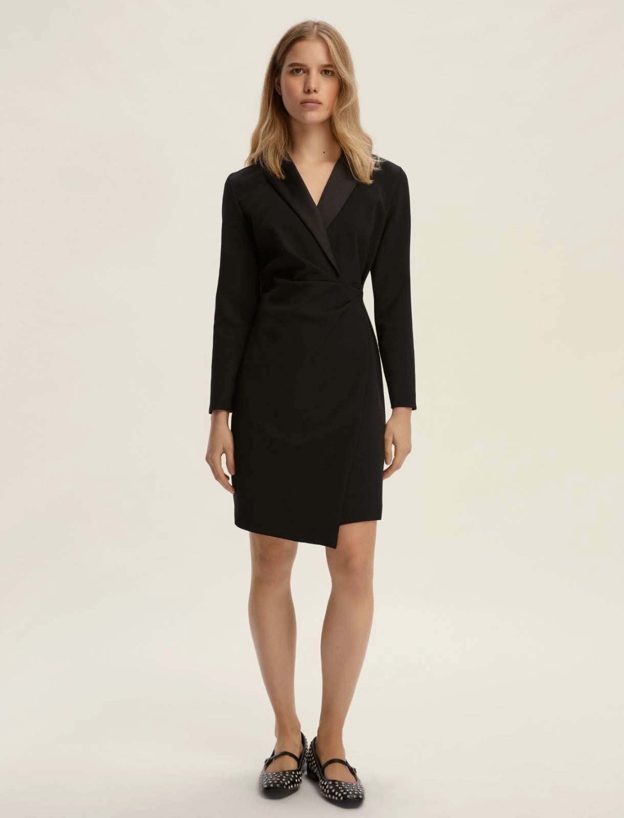 Con la sua linea avvolgente e il dettaglio in raso che illumina lo scollo a rever, questo abito incrociato è un'ode alla femminilità contemporanea. Elegante e deciso, si muove con disinvoltura tra impegni quotidiani e serate mondane.