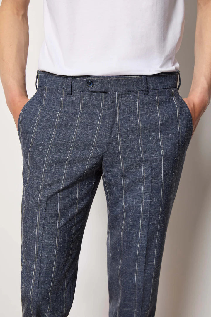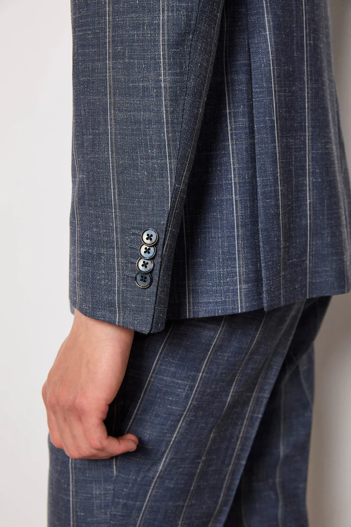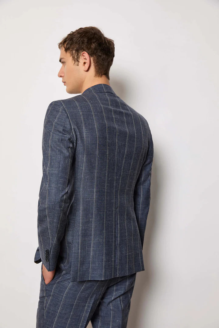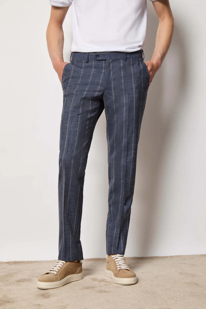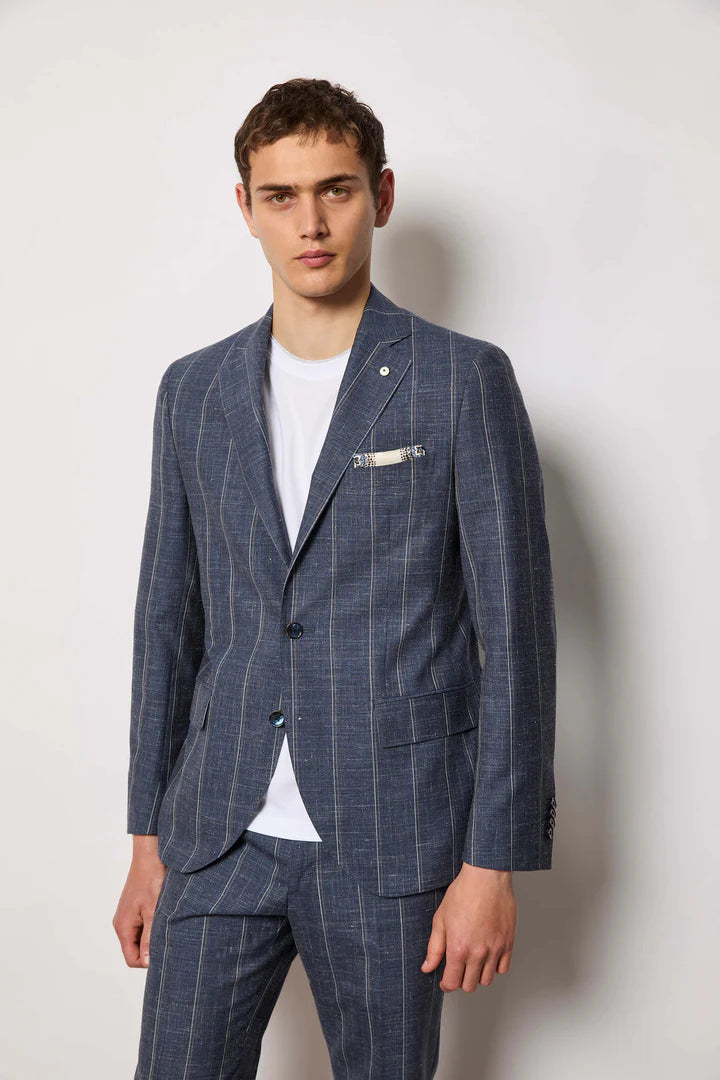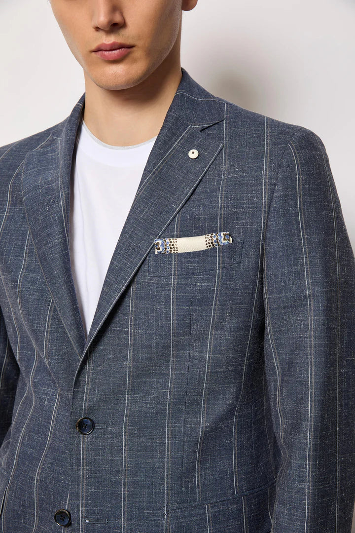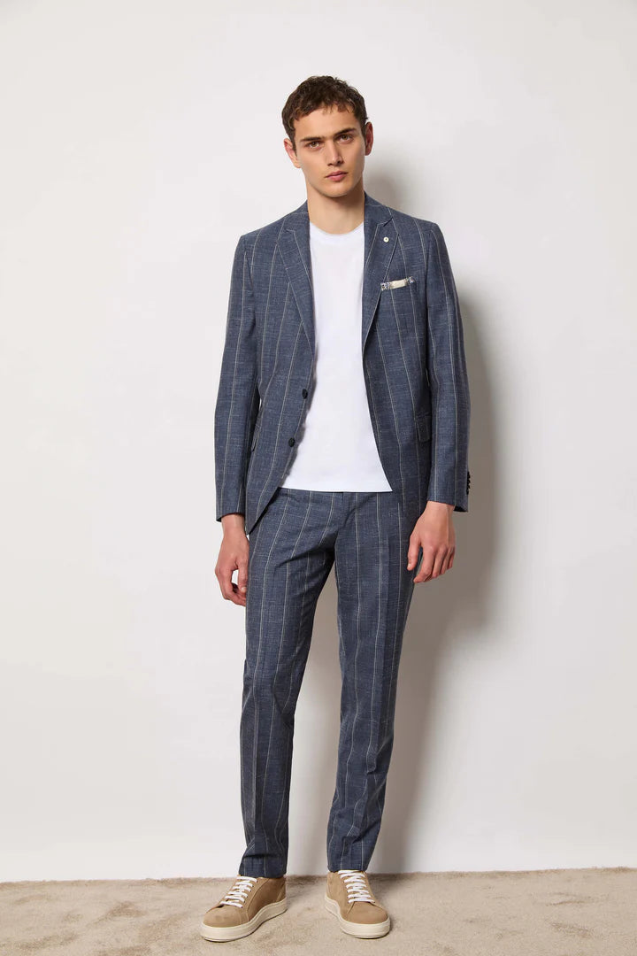 Abito in materiale pregiato e dal design giovanile, ideale per le occasioni speciali. Il blu rigato del tessuto LBM1911 53374 aggiunge un tocco di eleganza al tuo look.