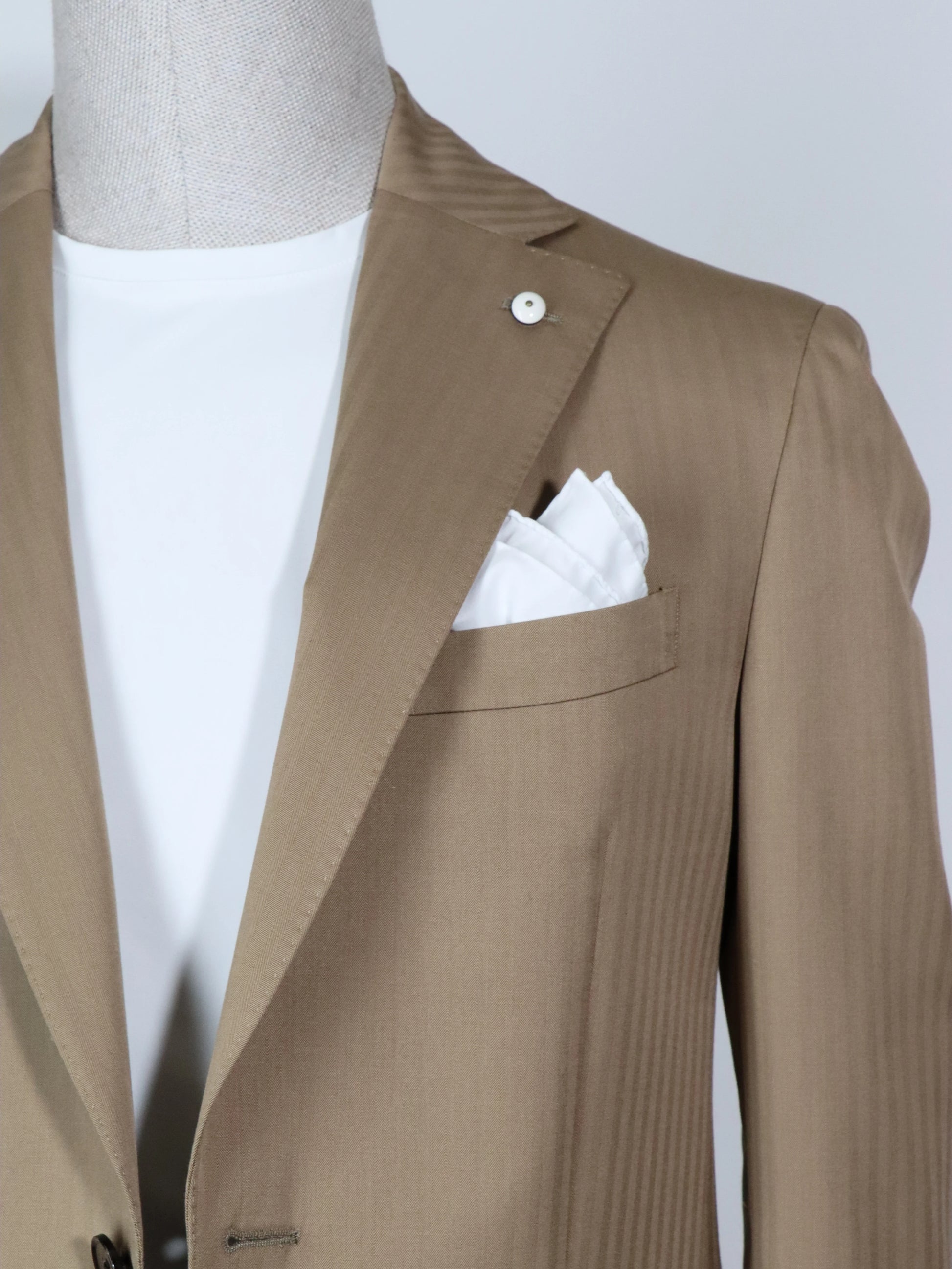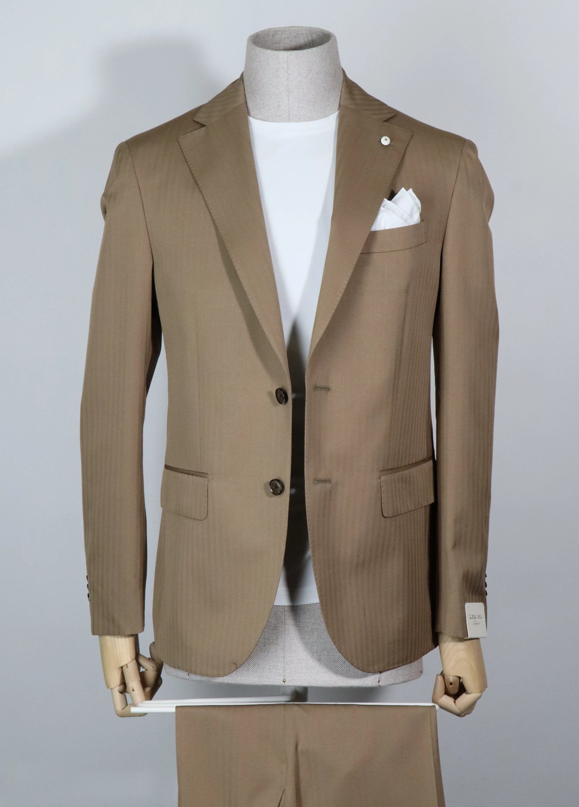 Abito da uomo monopetto in lana vergine e cotone non trattato realizzato in tessuto beige chiaro con una trama leggermente strutturata, ideale per un look sofisticato e contemporaneo. Dotato di tasche a pattine e spacchi laterali questo completo garantisce comfort e praticità. I pantaloni senza pince, comodi e versatili, completano il look rendendolo armonioso e d'effetto. Abito monopetto