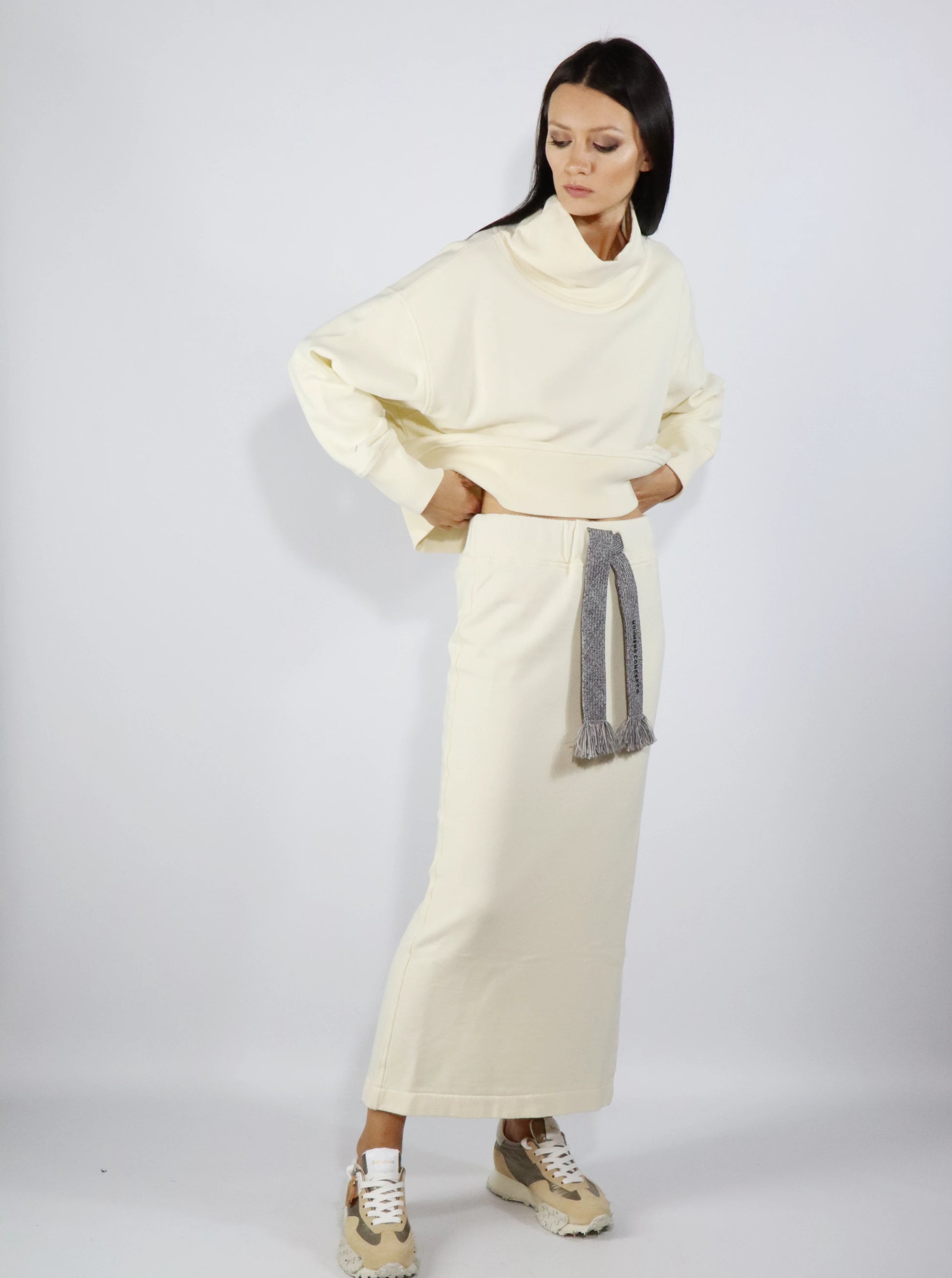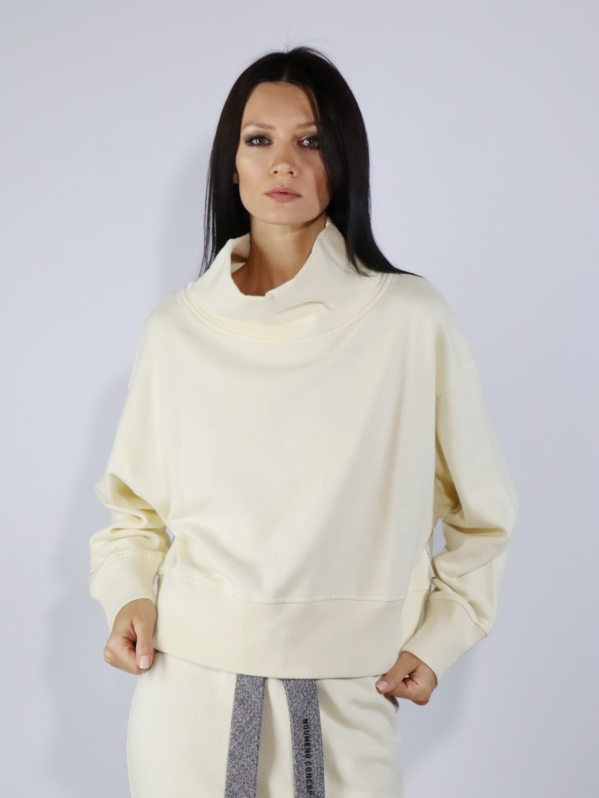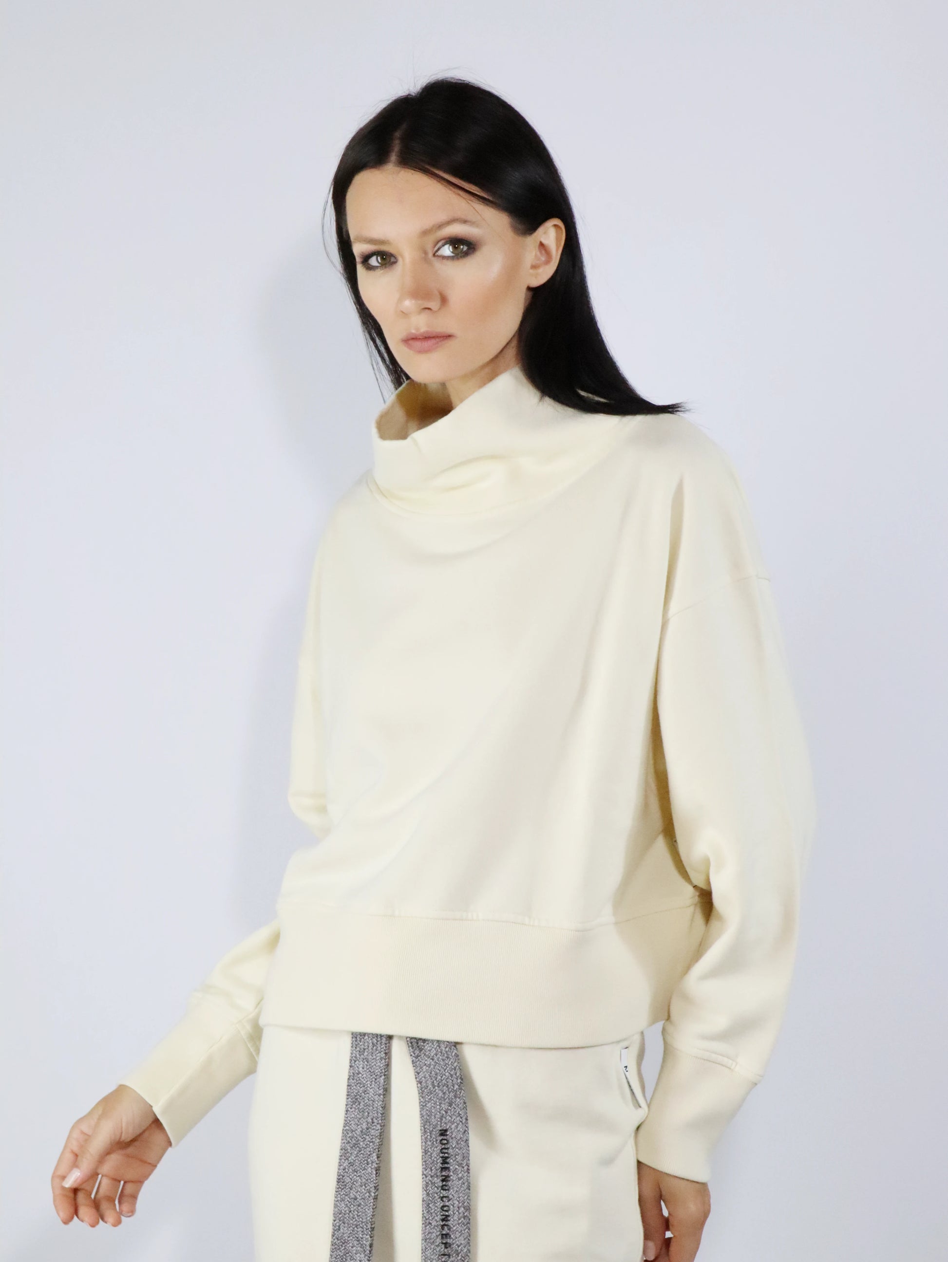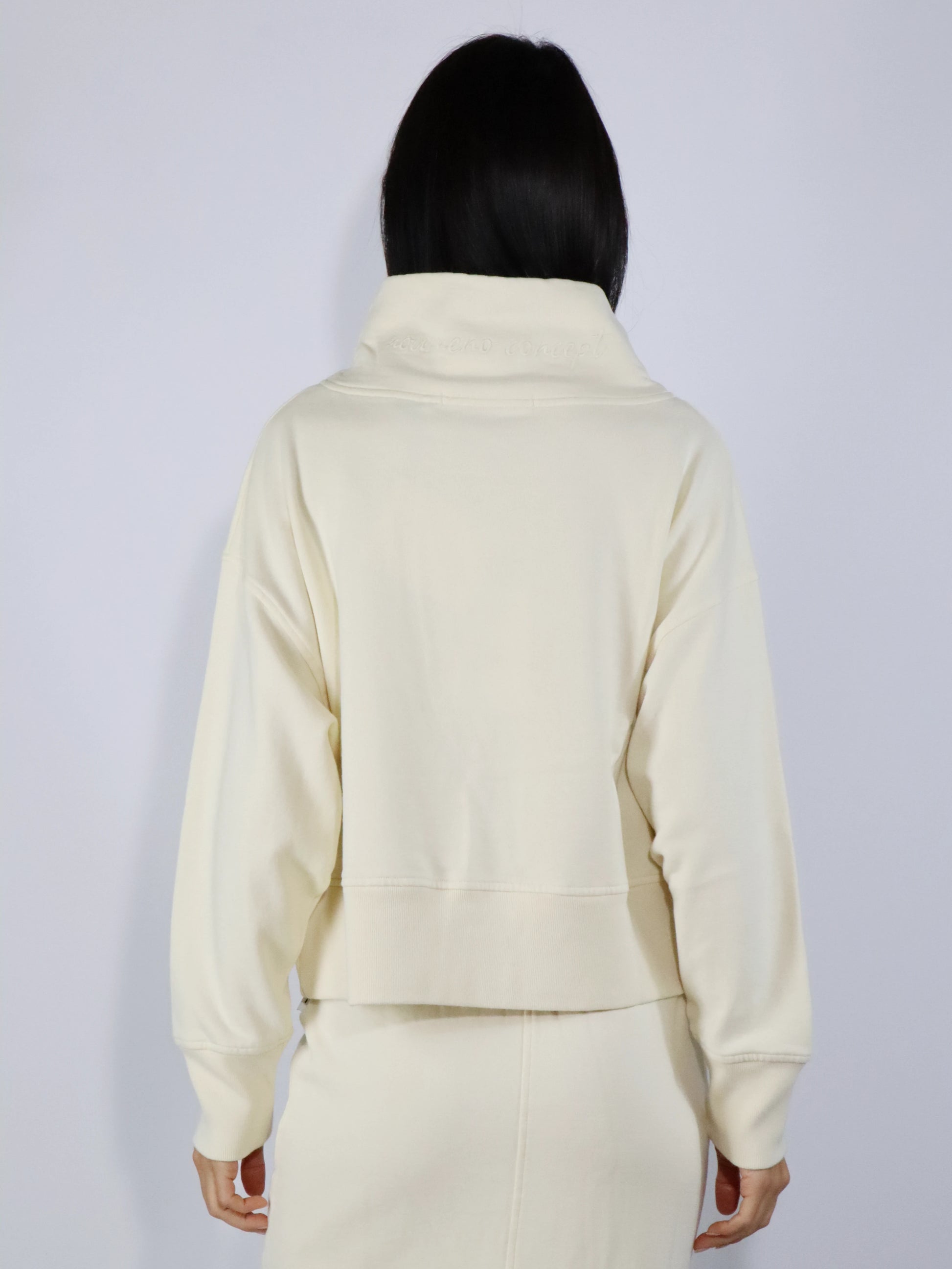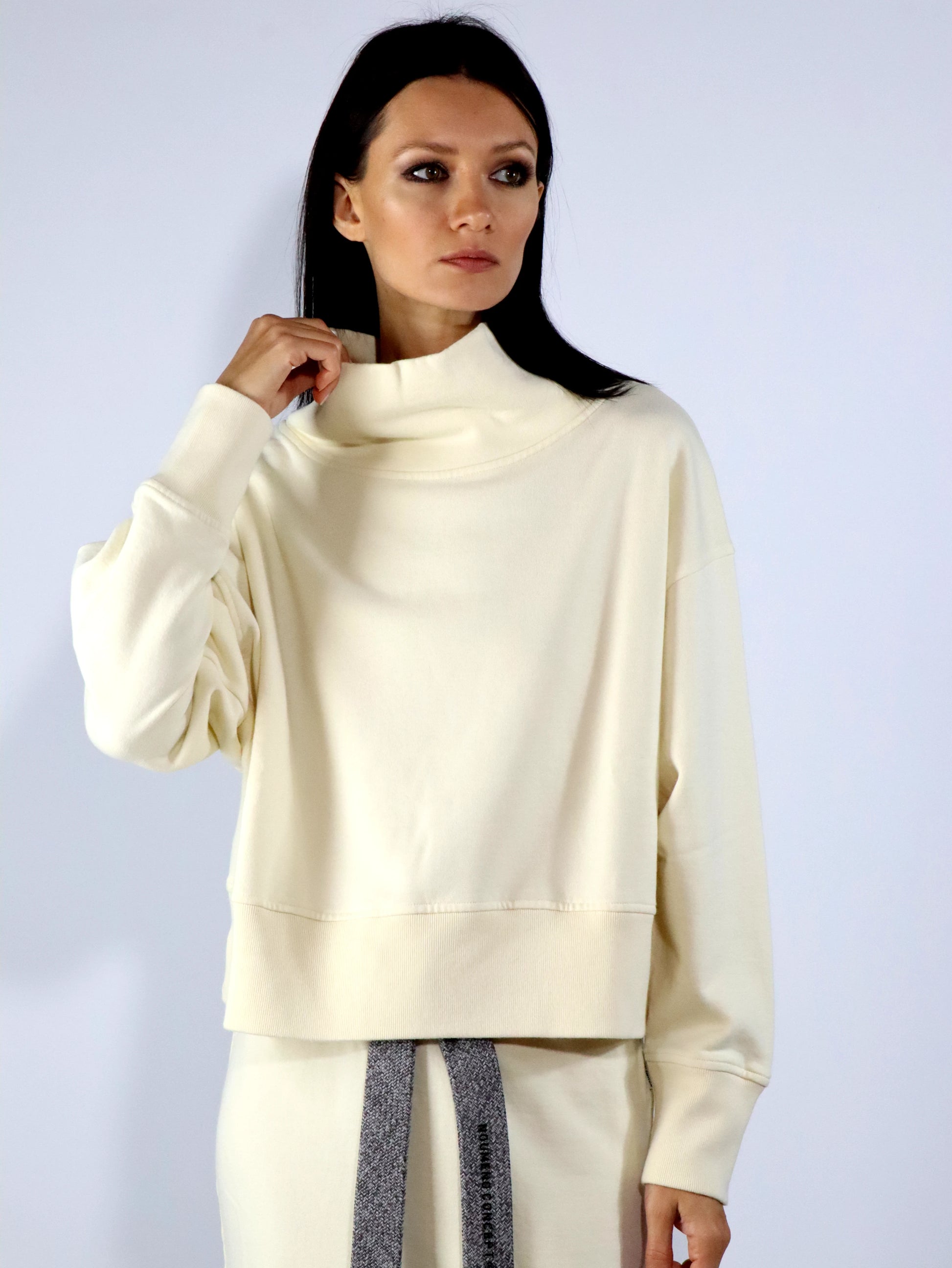 Felpa panna linea boxy con collo in piedi, vestibilità over