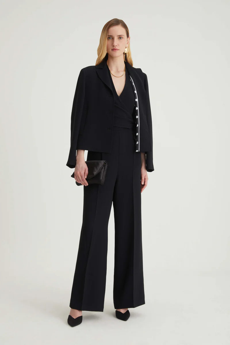 Un capo esclusivo, simbolo di eleganza pura e raffinatezza. Il design è caratterizzato da un elegante collo a rever, con una spalla imbottina. La semplicità della giacca viene caratterizzata da una chiusura frontale con tre bottoni a vista e delle comode tasche a filettone sui fianchi.
