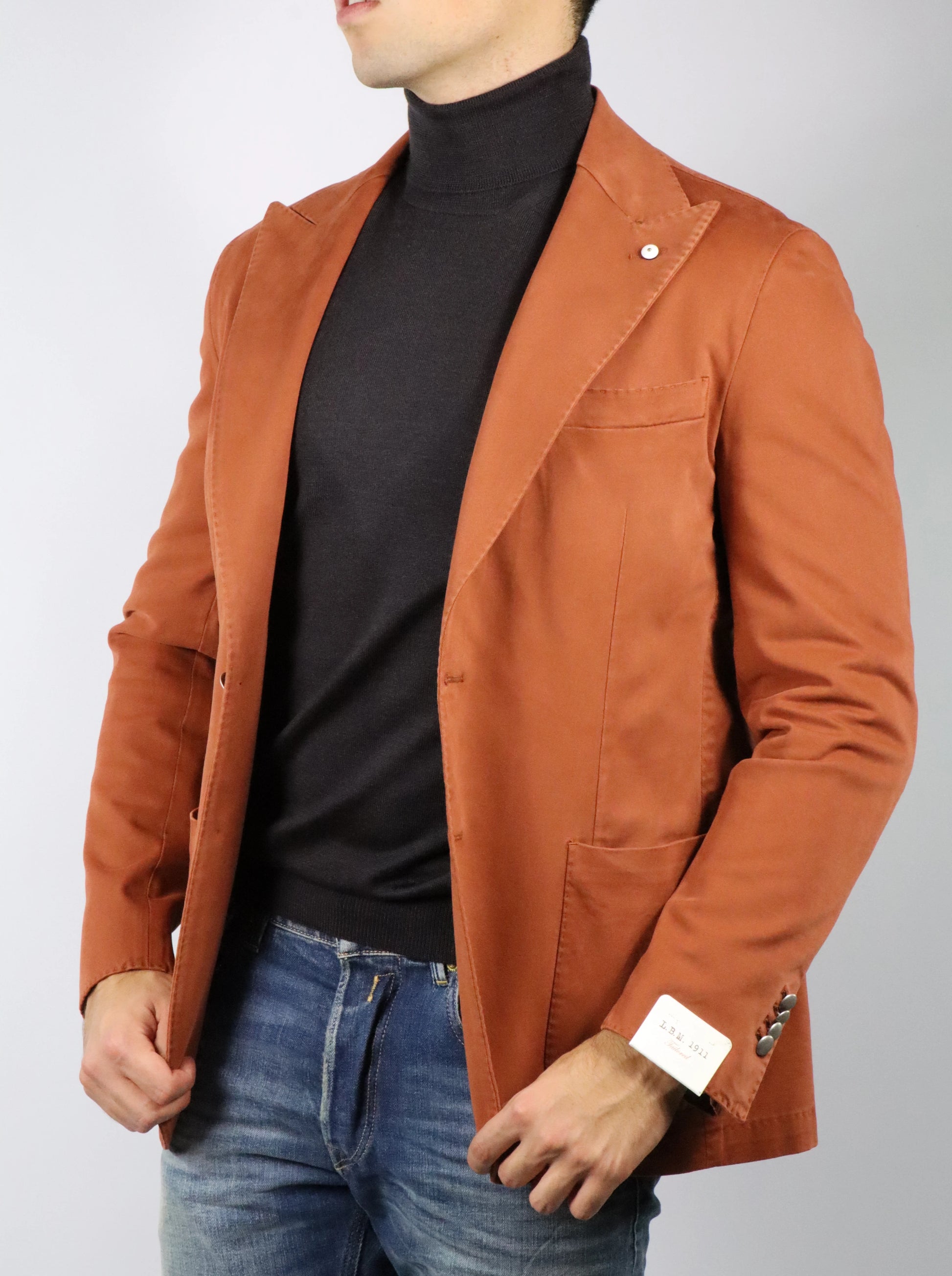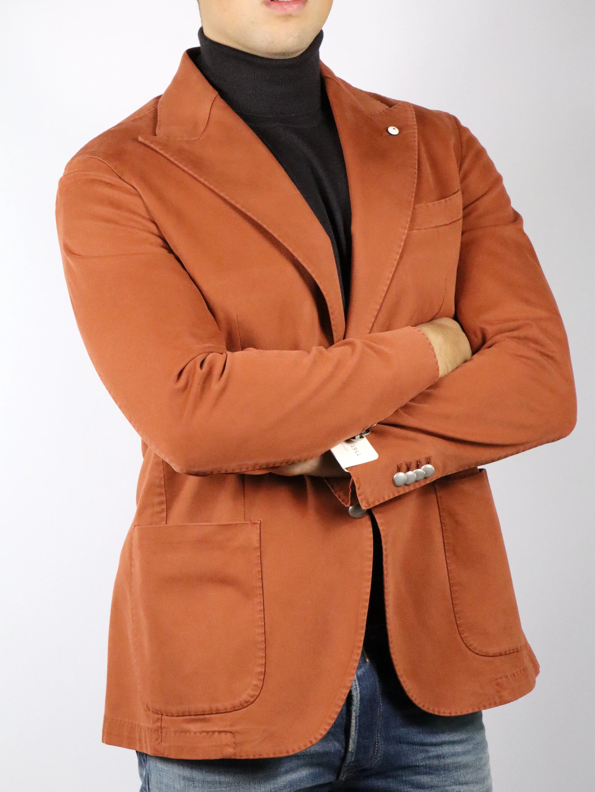 Giacca tinto capo con rever a lancia due tasche applicate sul davanti, spacchi laterali, bottoni in metallo, sfoderata, vestibilità slim fit.