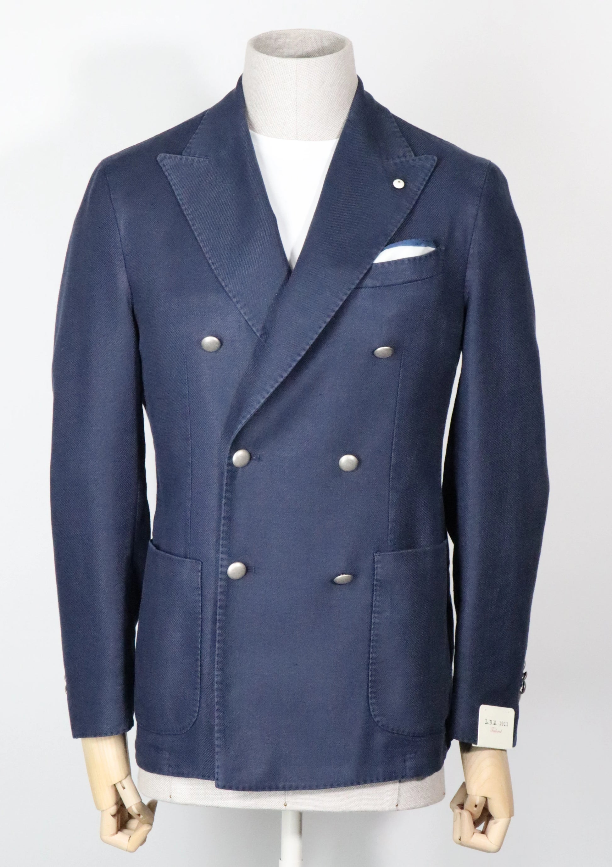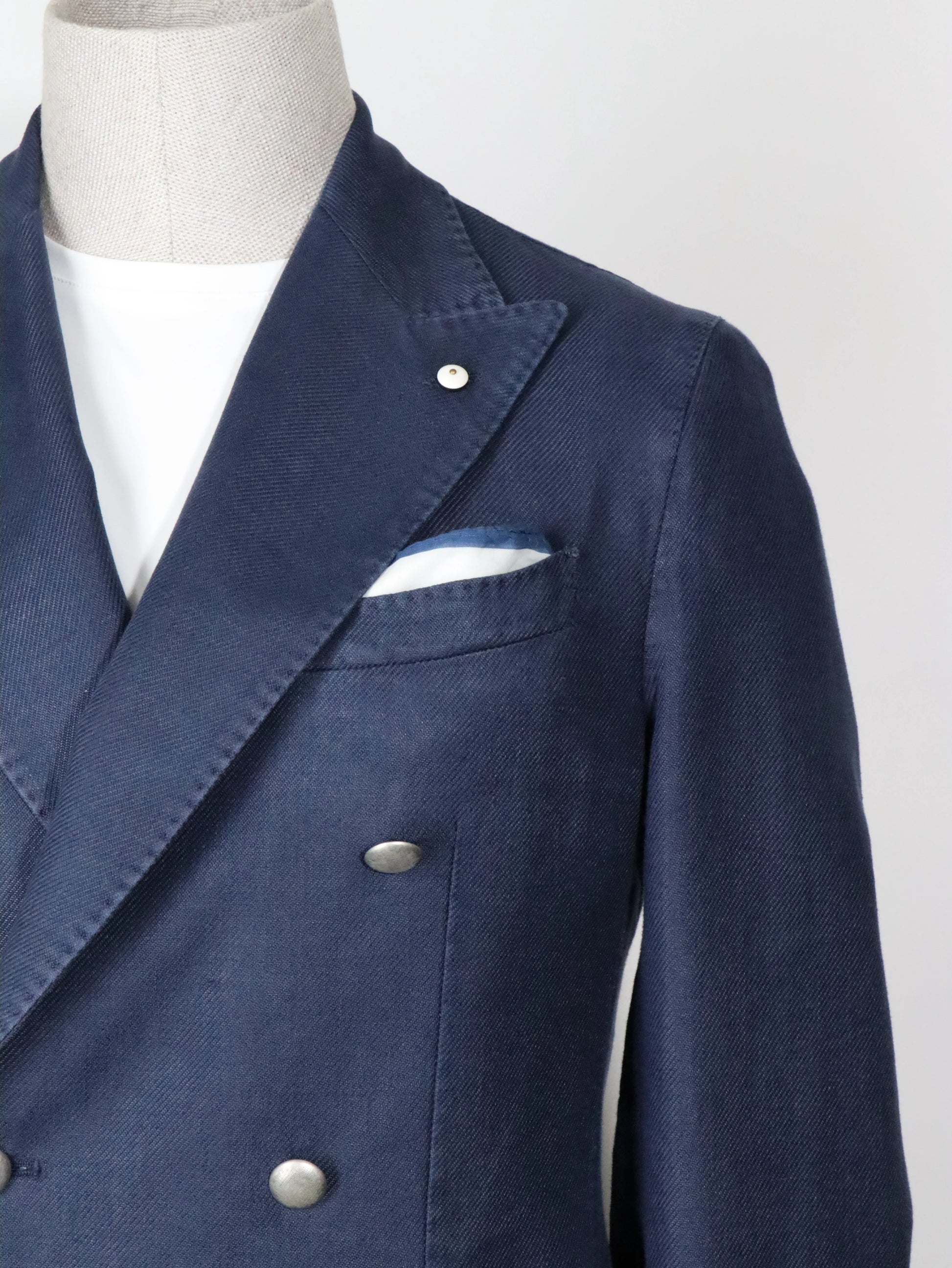 Giacca doppiopetto da uomo blu con bottoni in metallo color argento. La tintura in capo conferisce a questo blazer, realizzato in una ricercata mischia di cotone e lino, unicità e personalità. Il rever ampio punta lancia e le tasche a toppa completano questo capospalla versatile e raffinato.