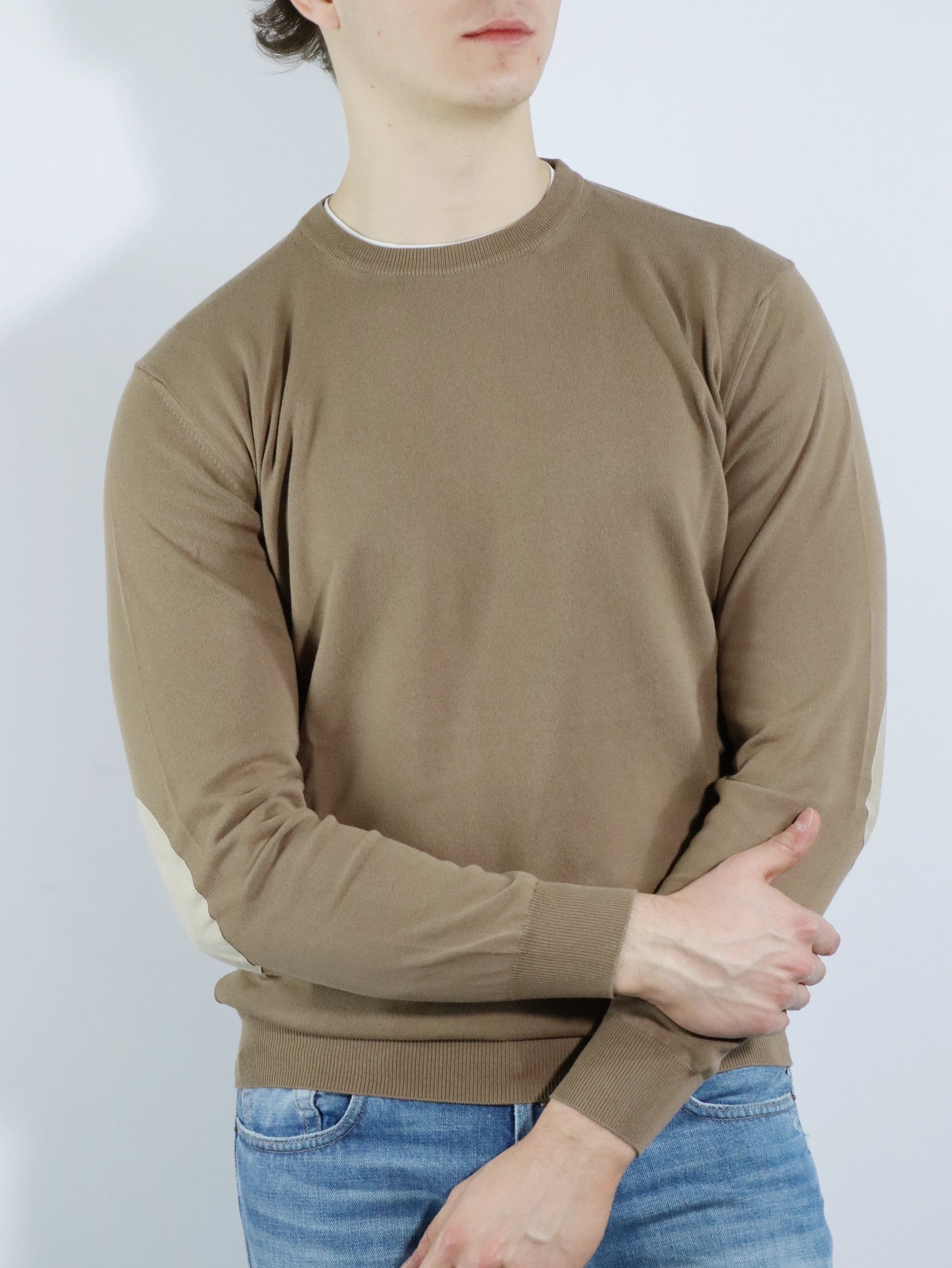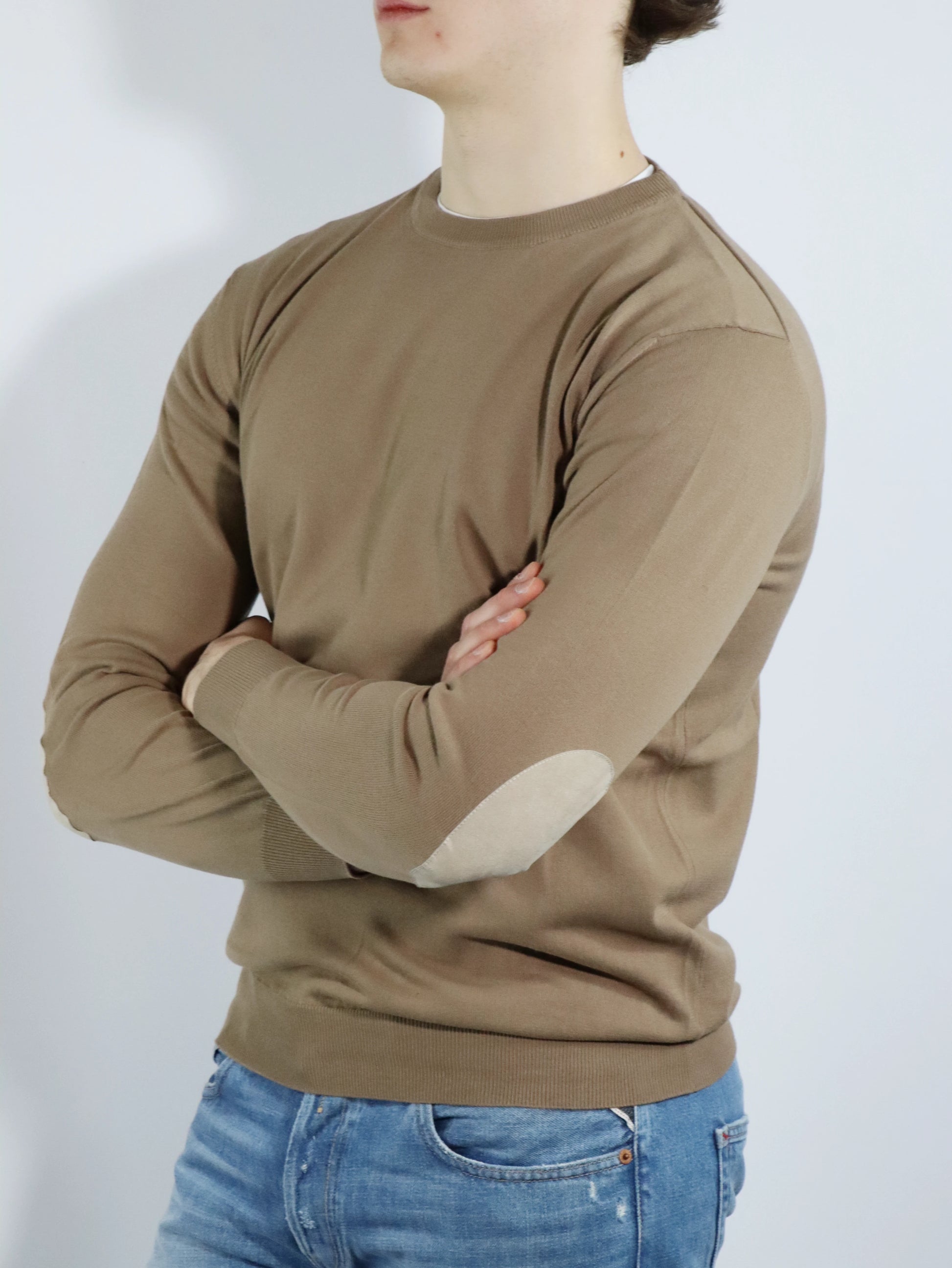Realizzato in Italia con cotone di alta qualità, questo girocollo è leggero e confortevole da indossare. Le toppe in Alcantara aggiungono un tocco di stile e resistenza all'usura. Perfetto per un look casual ma raffinato, ideale per ogni stagione.