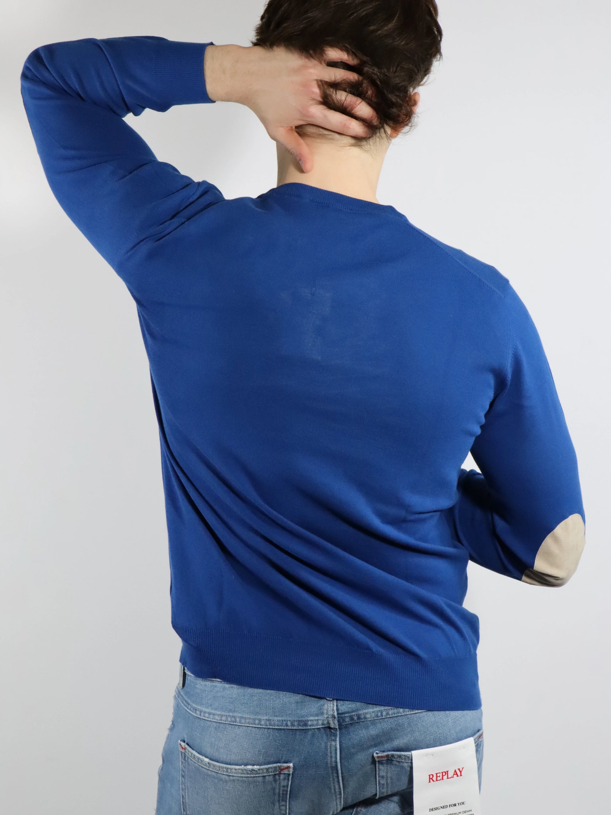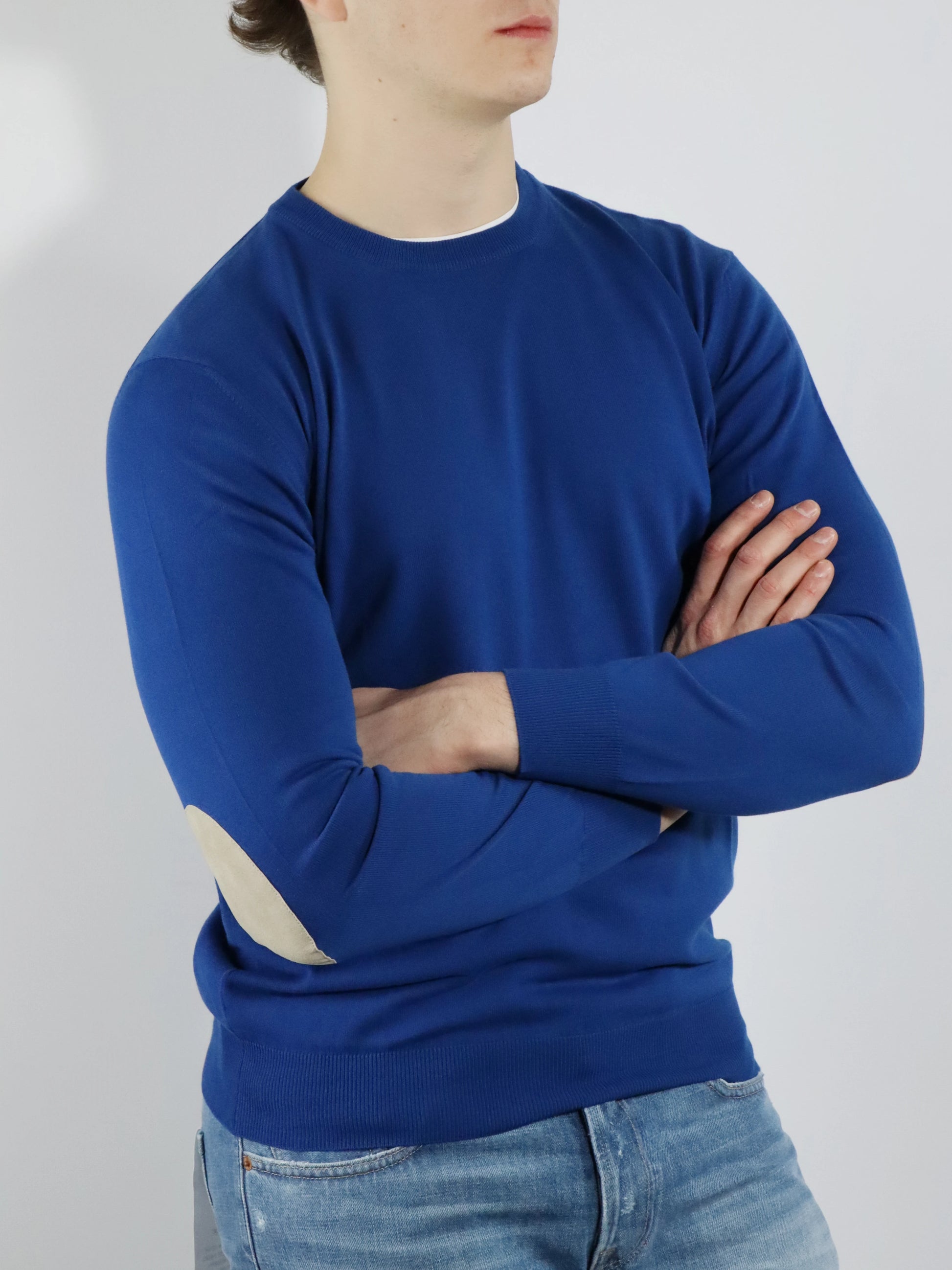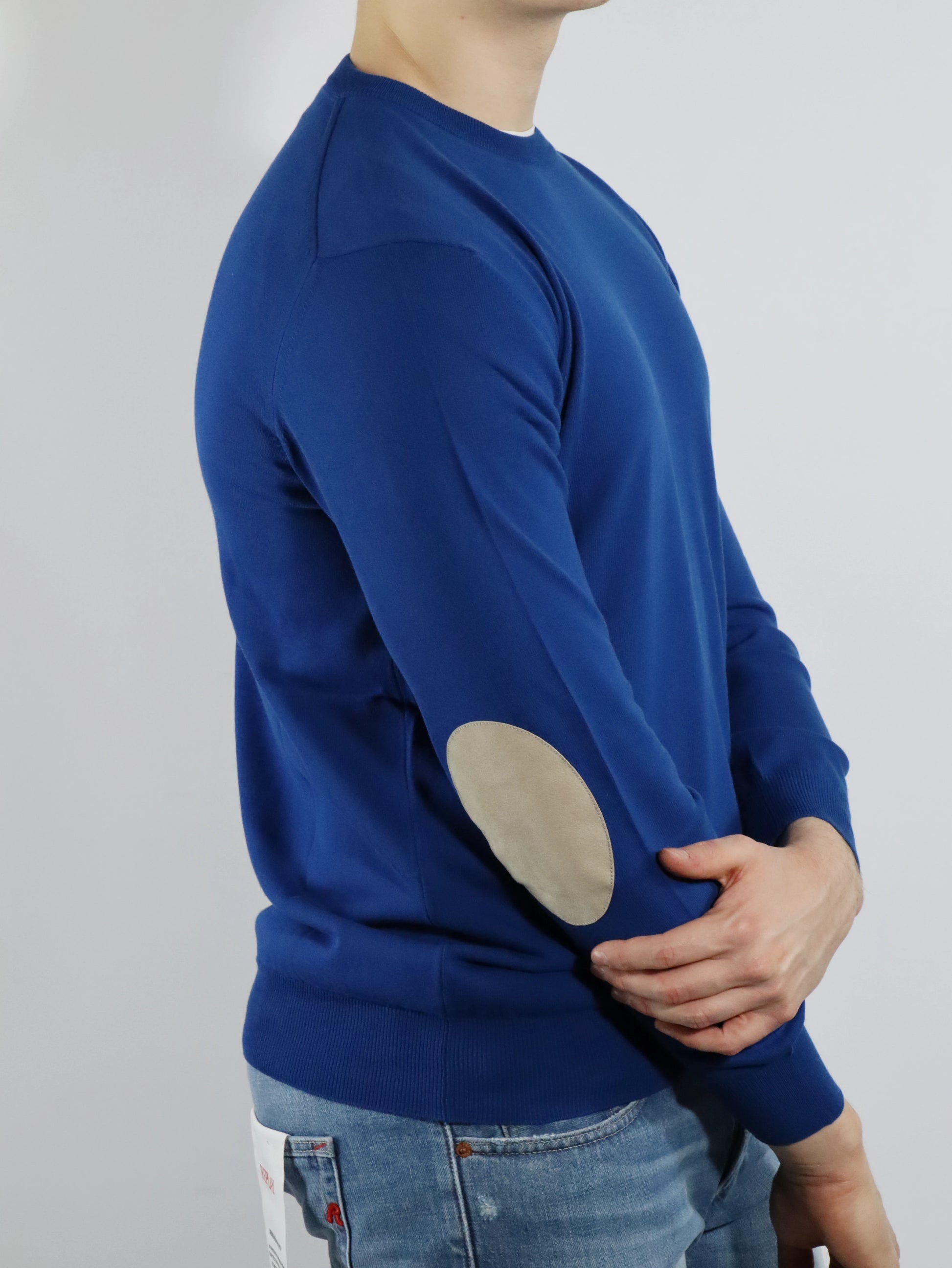 Realizzato in Italia con cotone di alta qualità, questo girocollo è leggero e confortevole da indossare. Le toppe in Alcantara aggiungono un tocco di stile e resistenza all'usura. Perfetto per un look casual ma raffinato, ideale per ogni stagione.