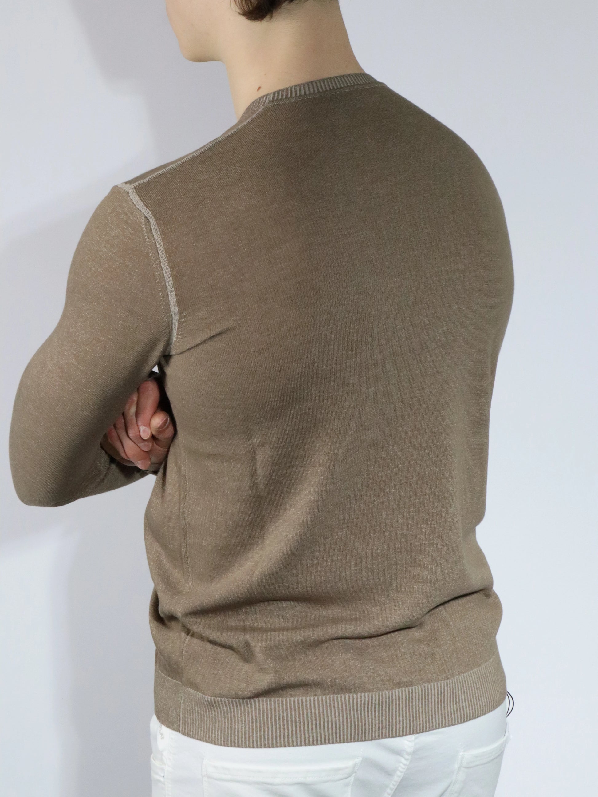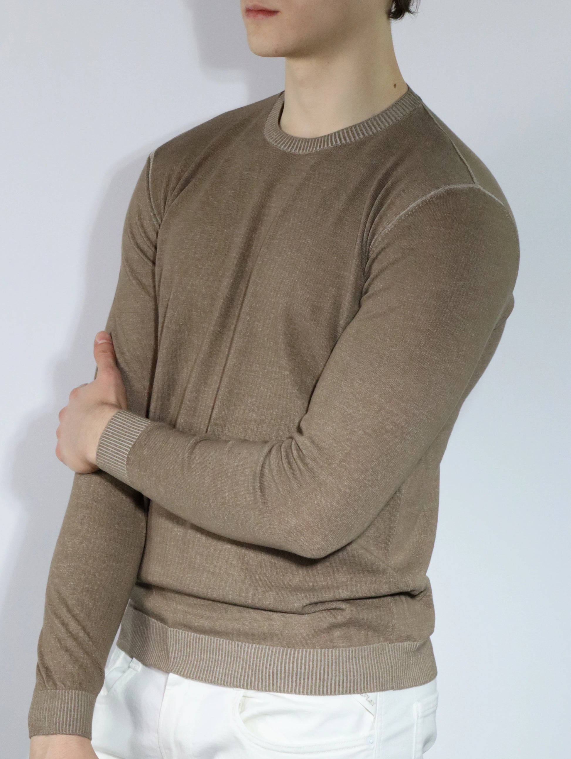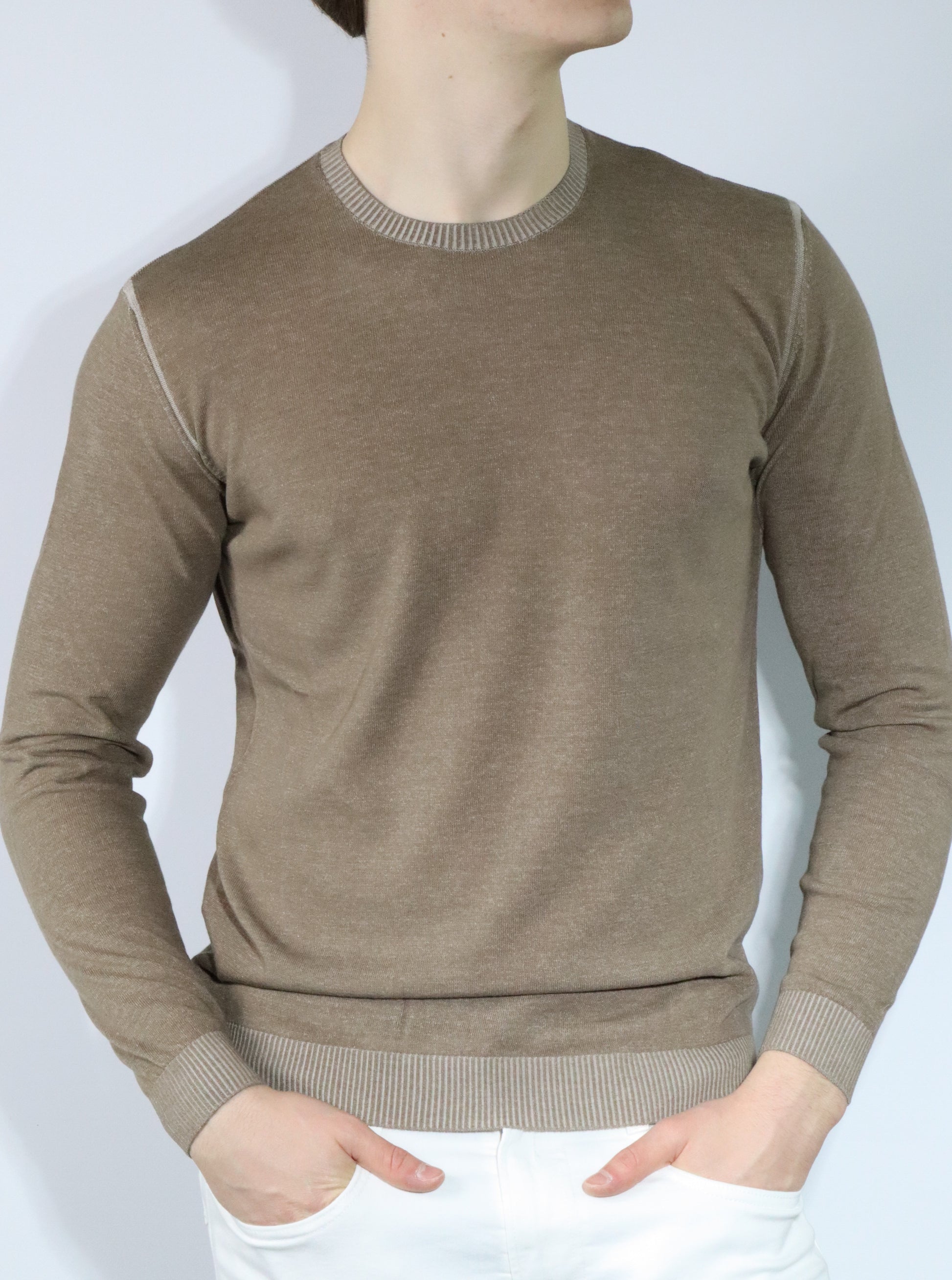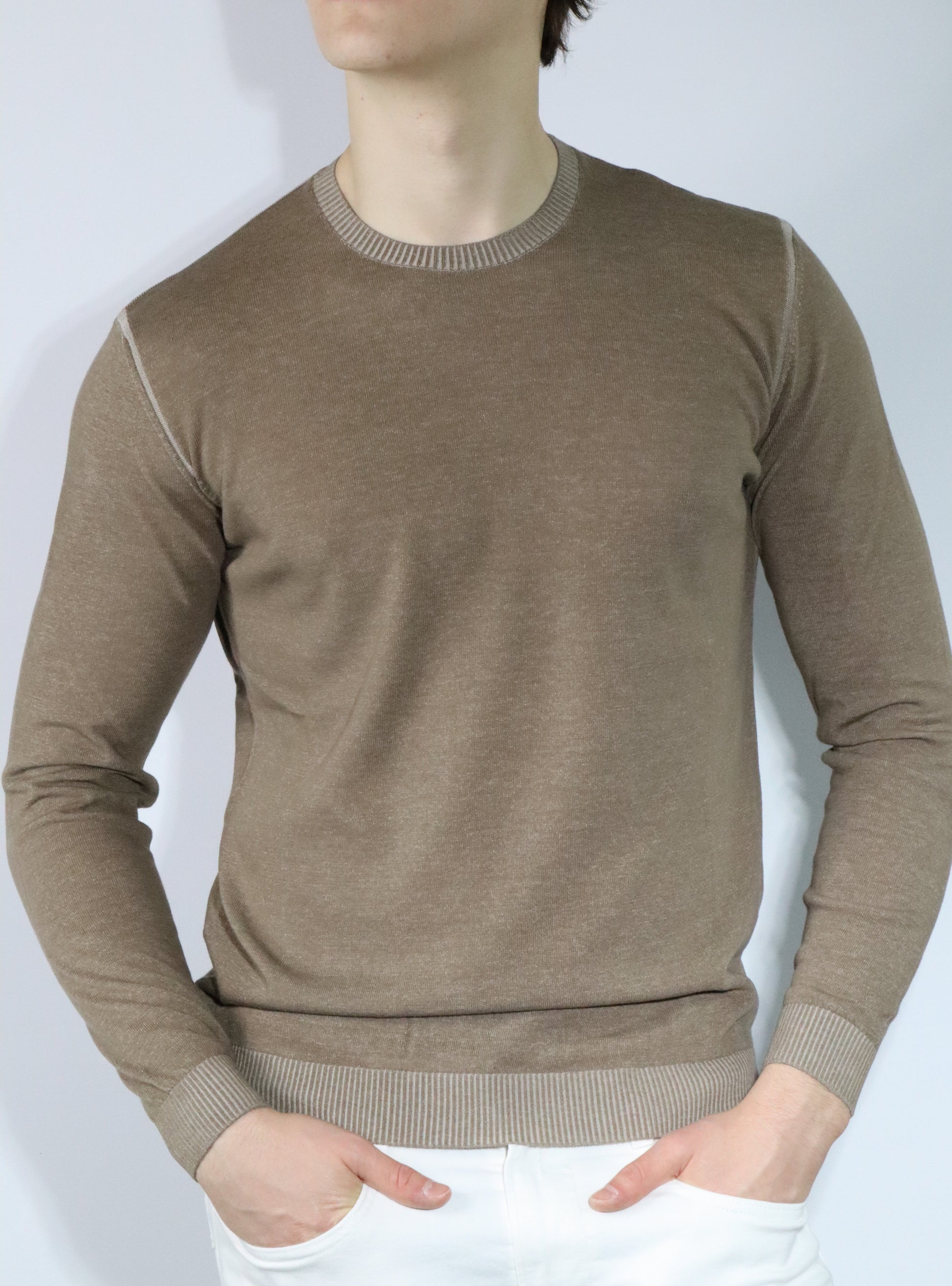Maglia girocollo in cotone melange con cuciture a contrasto collo e fondo a costine. Vestibilità regolare.