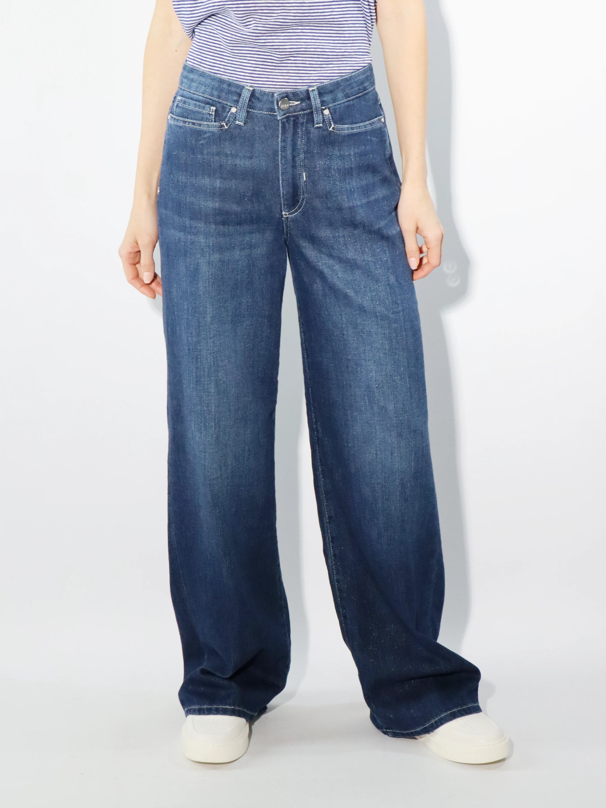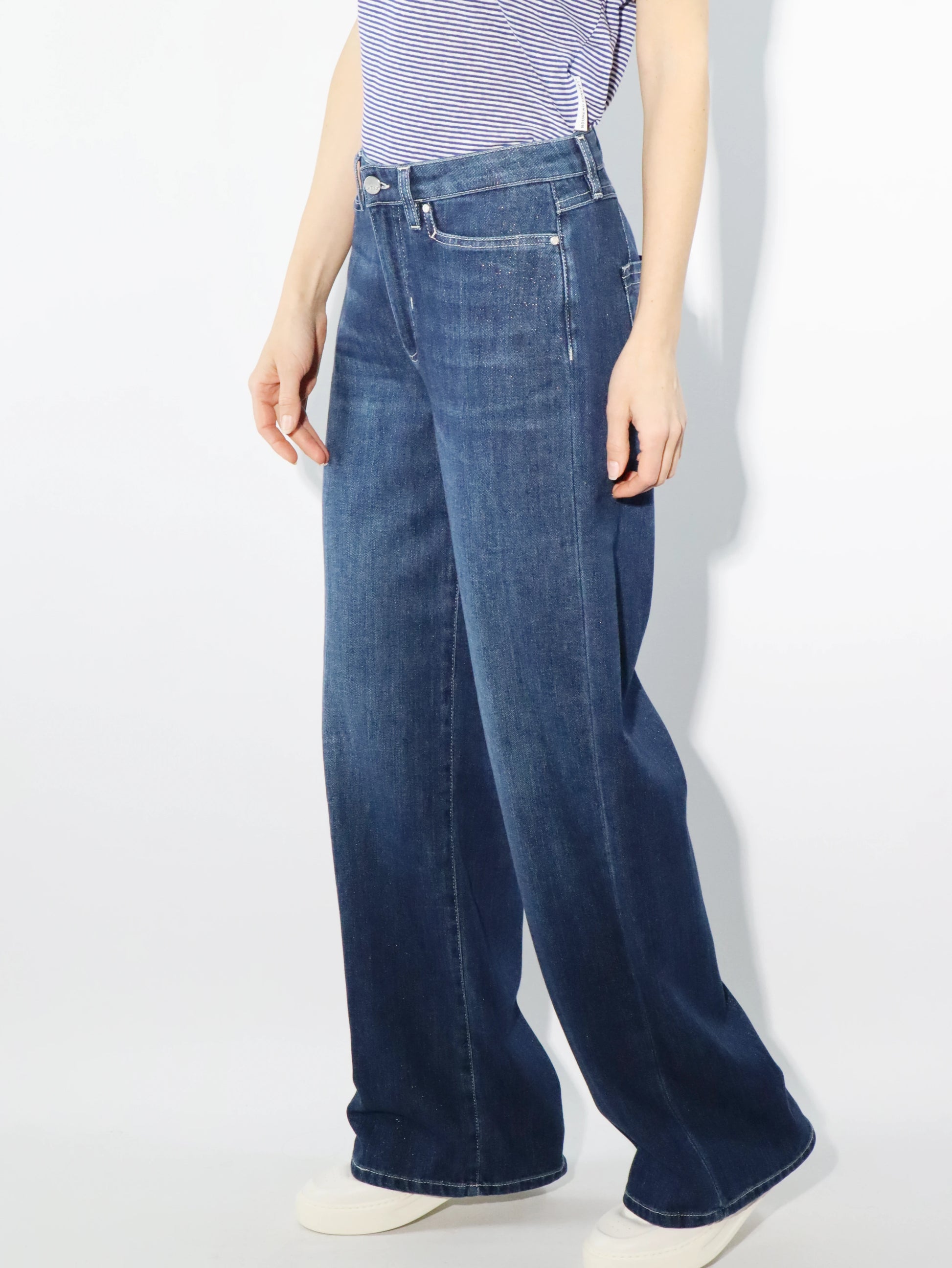 In left hand soft combed denim blu 9 oz. Lavaggio scuro e lurex.