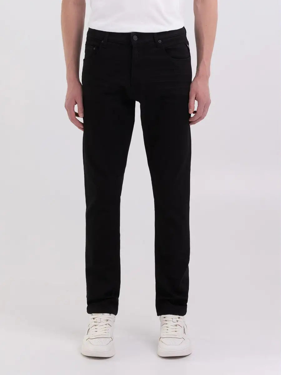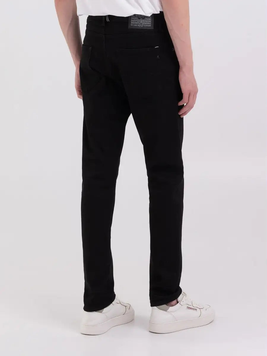 Jeans slim fit con vita regolare e gamba sottile più asciutta dal ginocchio al fondo che offre una vestibilità comoda e aderente allo stesso tempo. Il modello dal look pulito e autentico è realizzato in modal power stretch denim nero di misto cotone 11,5 oz con tono di lavaggio scuro. Il capo cinque tasche si caratterizza per il trattamento enzimatico. Il pantalone presenta una chiusura con bottone e zip.