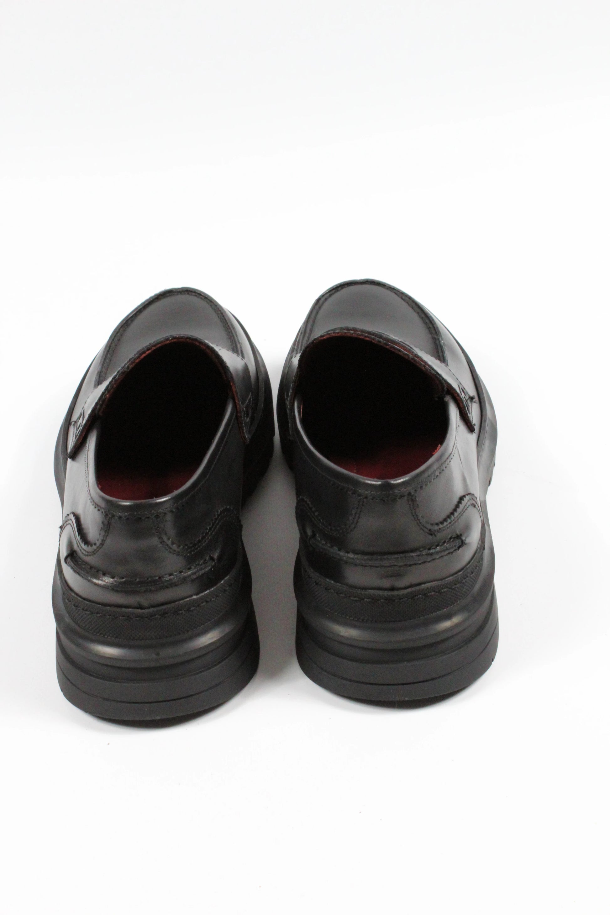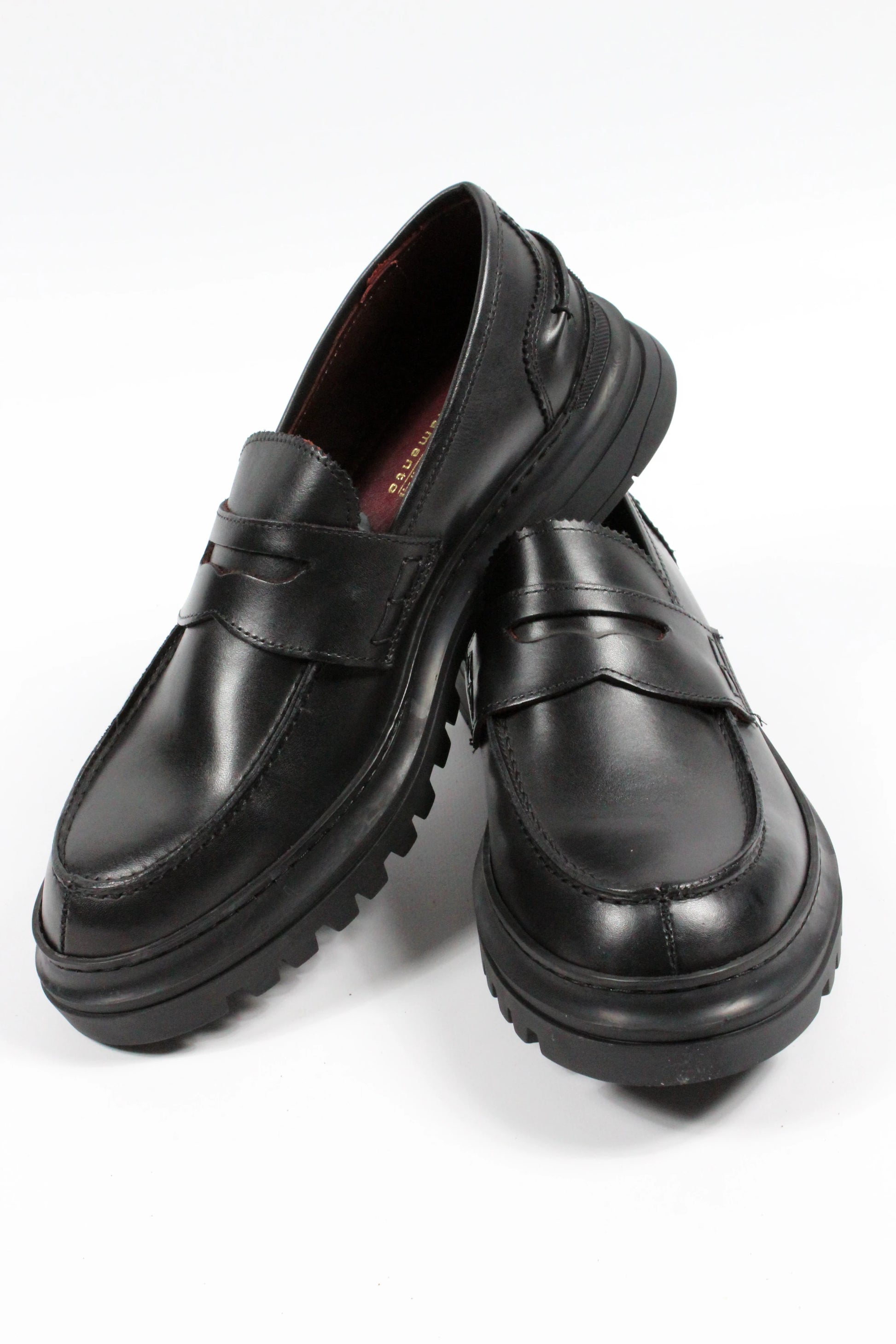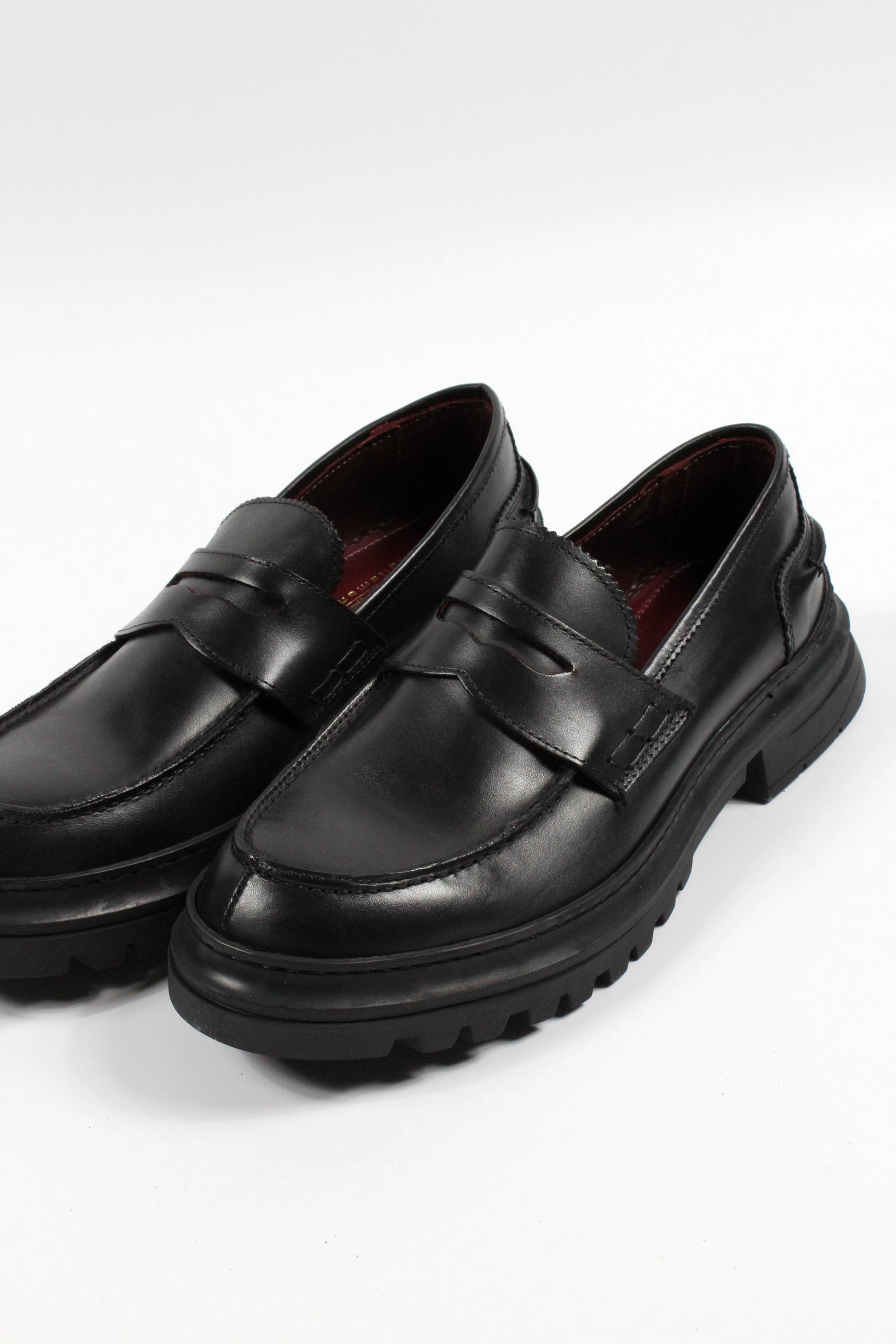 Mocassino in pelle di vitello nero liscio con suola in gomma a carro-armato per una perfetta tenuta su ogni terreno. Grazie allo spessore della suola isola perfettamente dal freddo. Made in Italy. Calzata regolare.