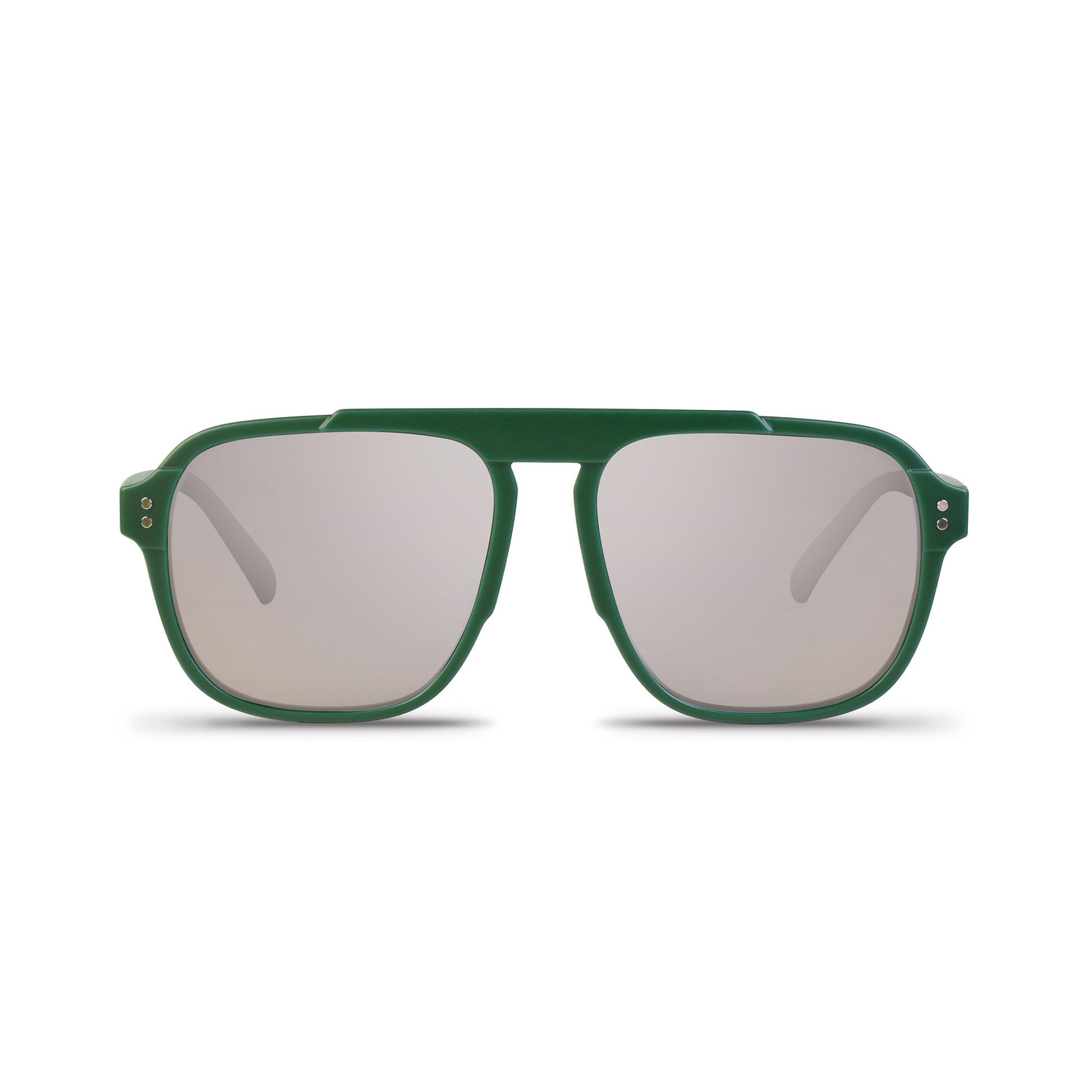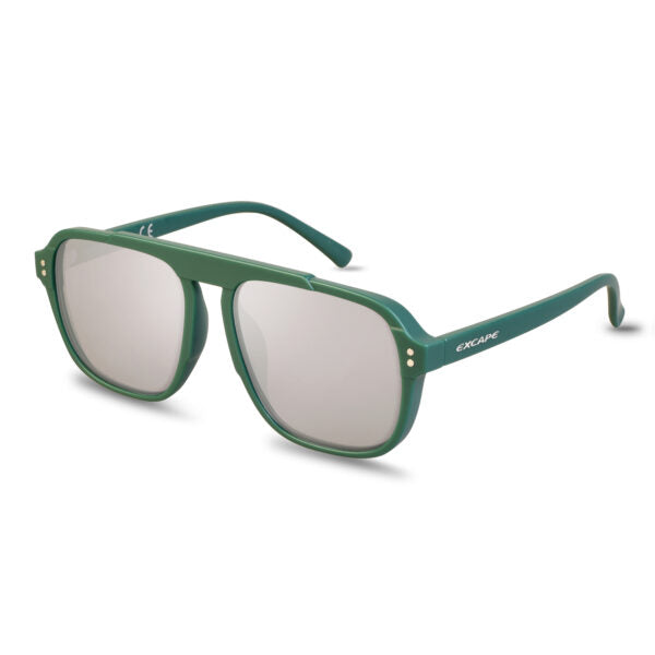 Il colore verde della montatura si accompagna a lenti specchiate per conferire uno stile ricercato. Da sfoggiare con disinvoltura.
