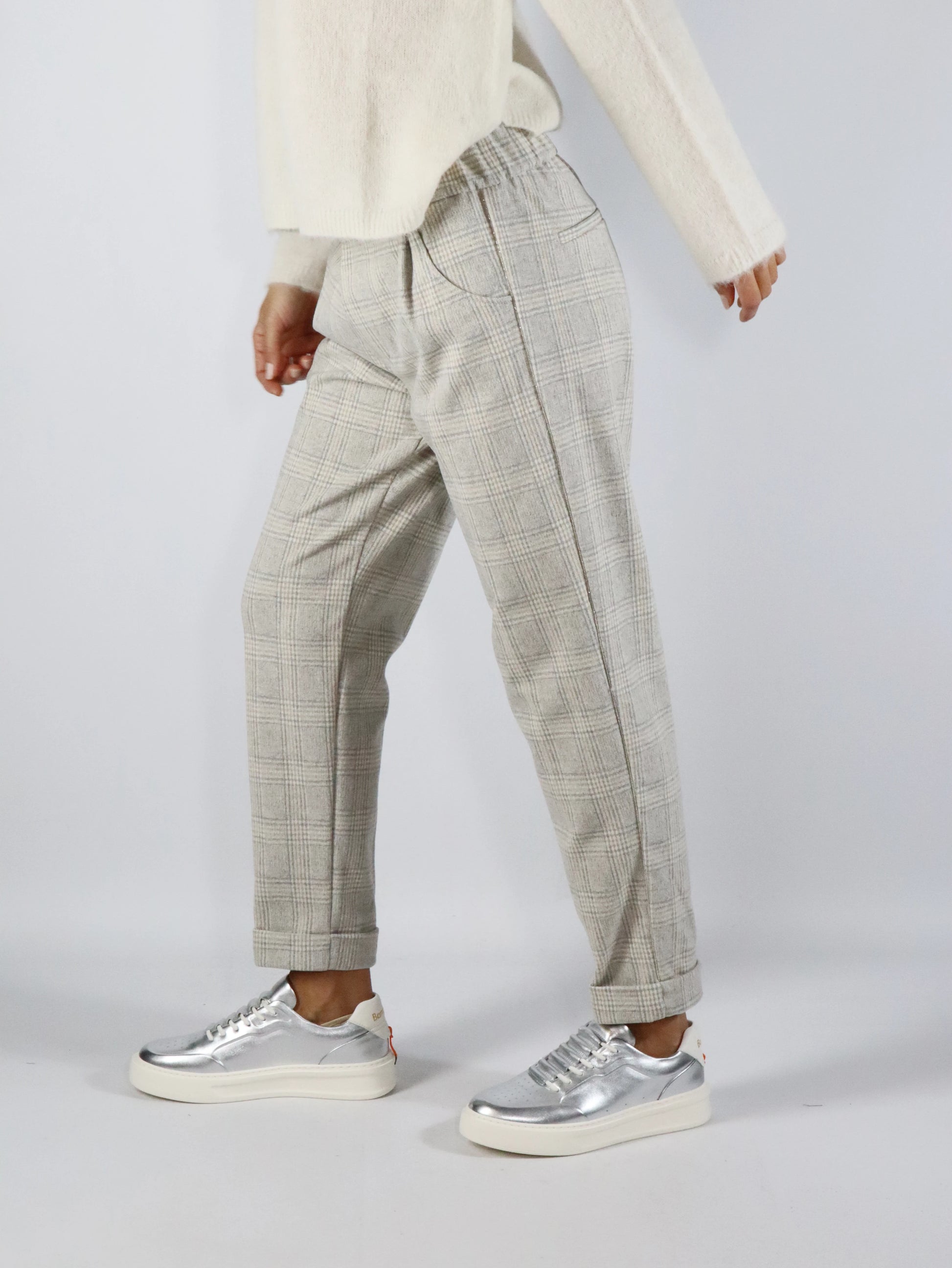 Per l'Autunno Inverno 2024, Mason's propone i pantaloni Easy Jogger, pantaloni chino donna che uniscono l'eleganza del pattern galles al comfort di una vestibilità relaxed. Realizzati in jersey di alta qualità, questi pantaloni chino da donna offrono morbidezza e flessibilità, ideali per affrontare la stagione fredda con stile. La fascia in vita assicura una vestibilità ottimale, mentre il pattern galles aggiunge un tocco di raffinatezza al design. Il colore grigio, sofisticato e versatile, si adatta facilmente a molteplici abbinamenti.
