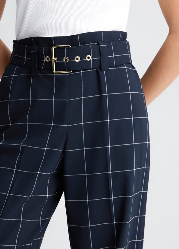 Stanca dei soliti pantaloni formali? Questi panta-palazzo Liu Jo accendono le tue glam-vibes con una trama check blu scuro e una vita alta che slancia la figura con grazia. Sceglili con décolleté per regalare qualche centimetro in più alla silhouette.