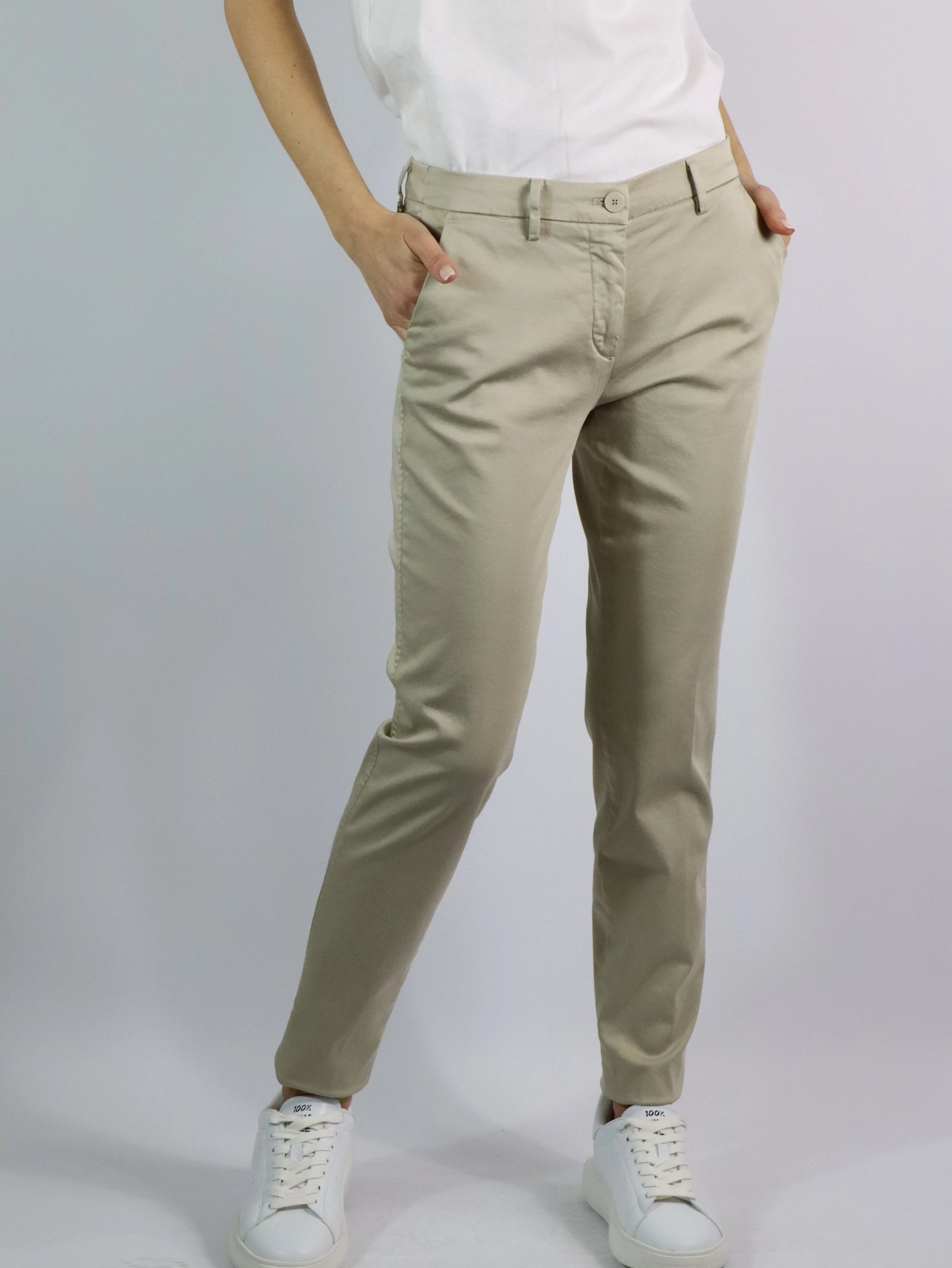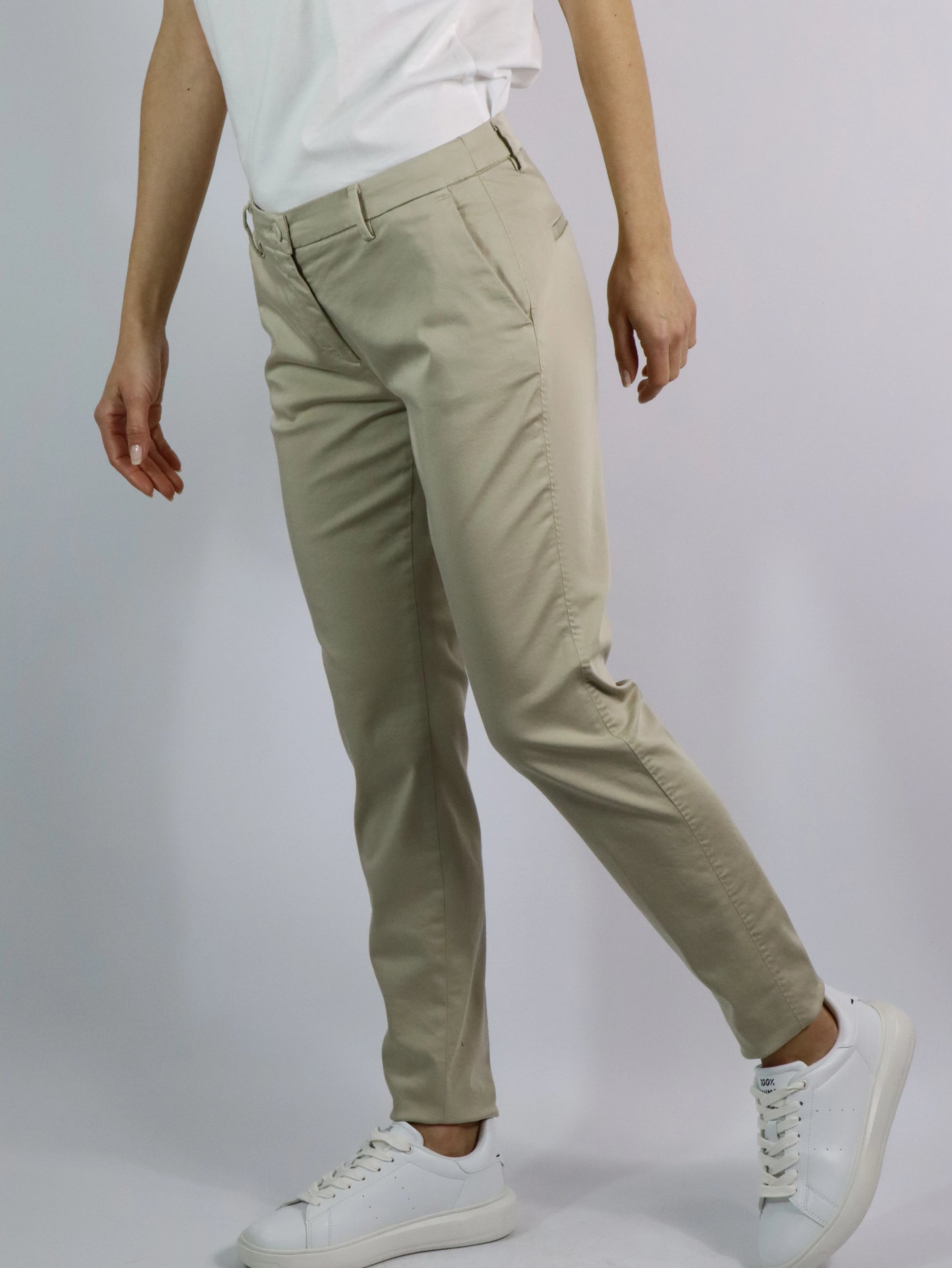 Pantalone chino da donna Mason’s in raso stretch modello New York Slim, vestibilità slim. Il pantalone New York Slim è un chino must have ed è il pantalone che ogni donna deve avere nel suo guardaroba perchè dona un fit perfetto ad ogni body type, grazie al comfort del tessuto e alla vestibilità. Il pantalone chino in raso stretch fa parte della linea Essential e può essere abbinato con una camicia in viscosa in fantasia per un outfit estivo e sofisticato.