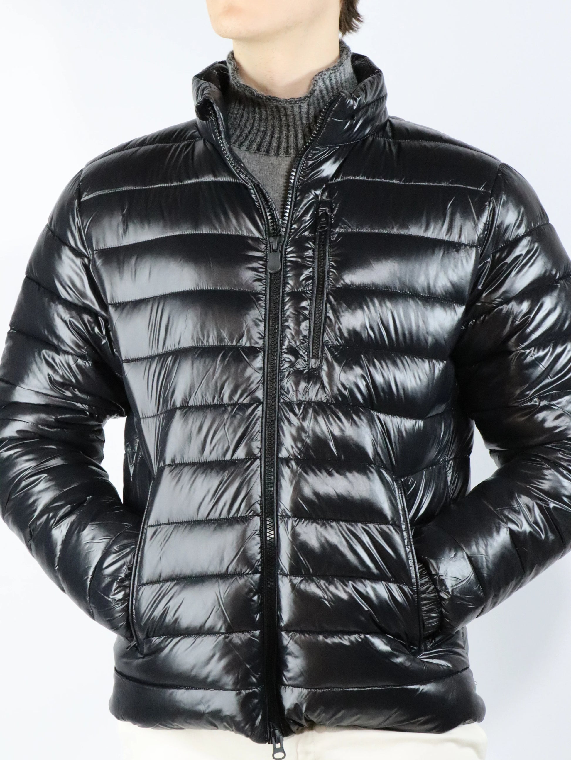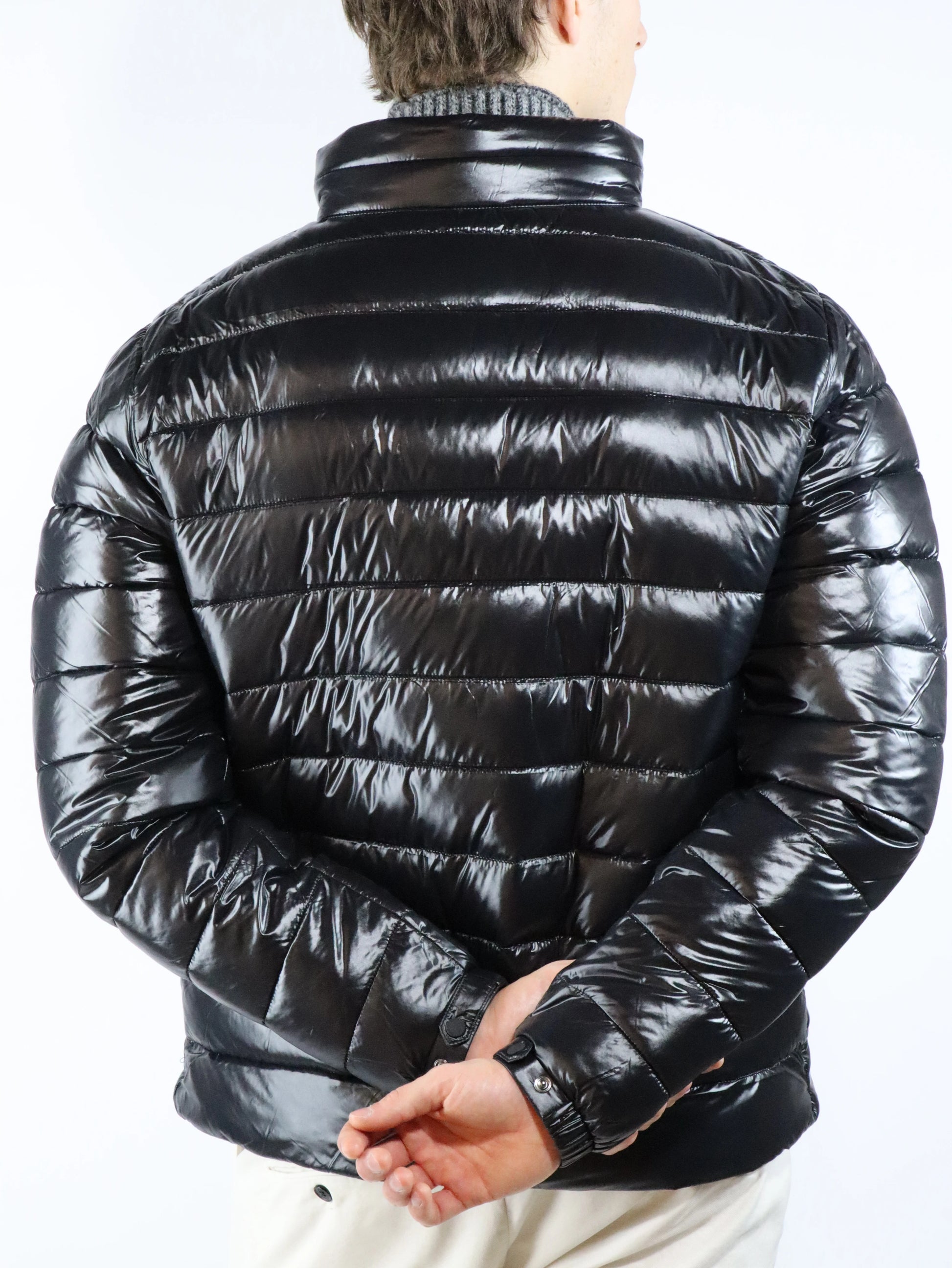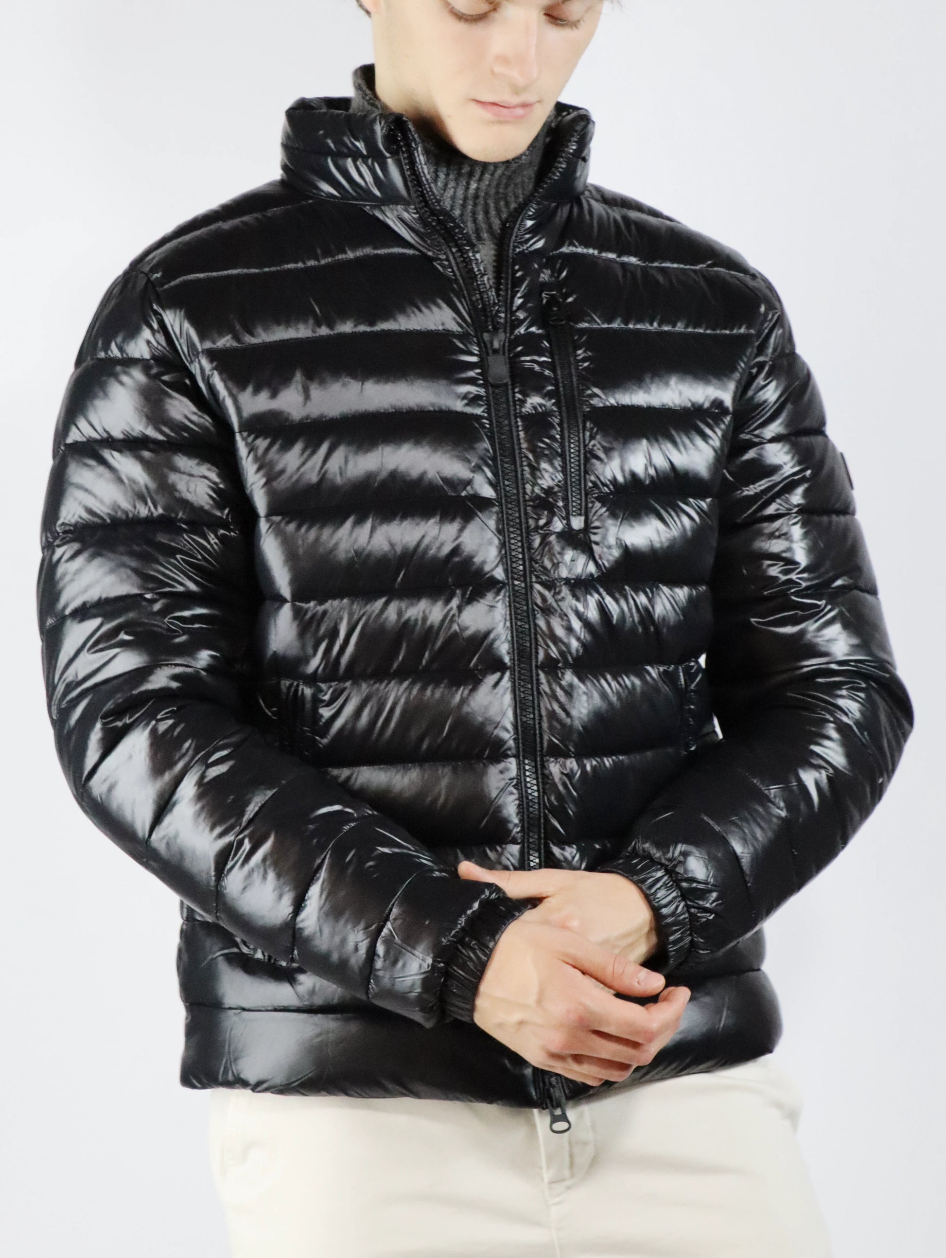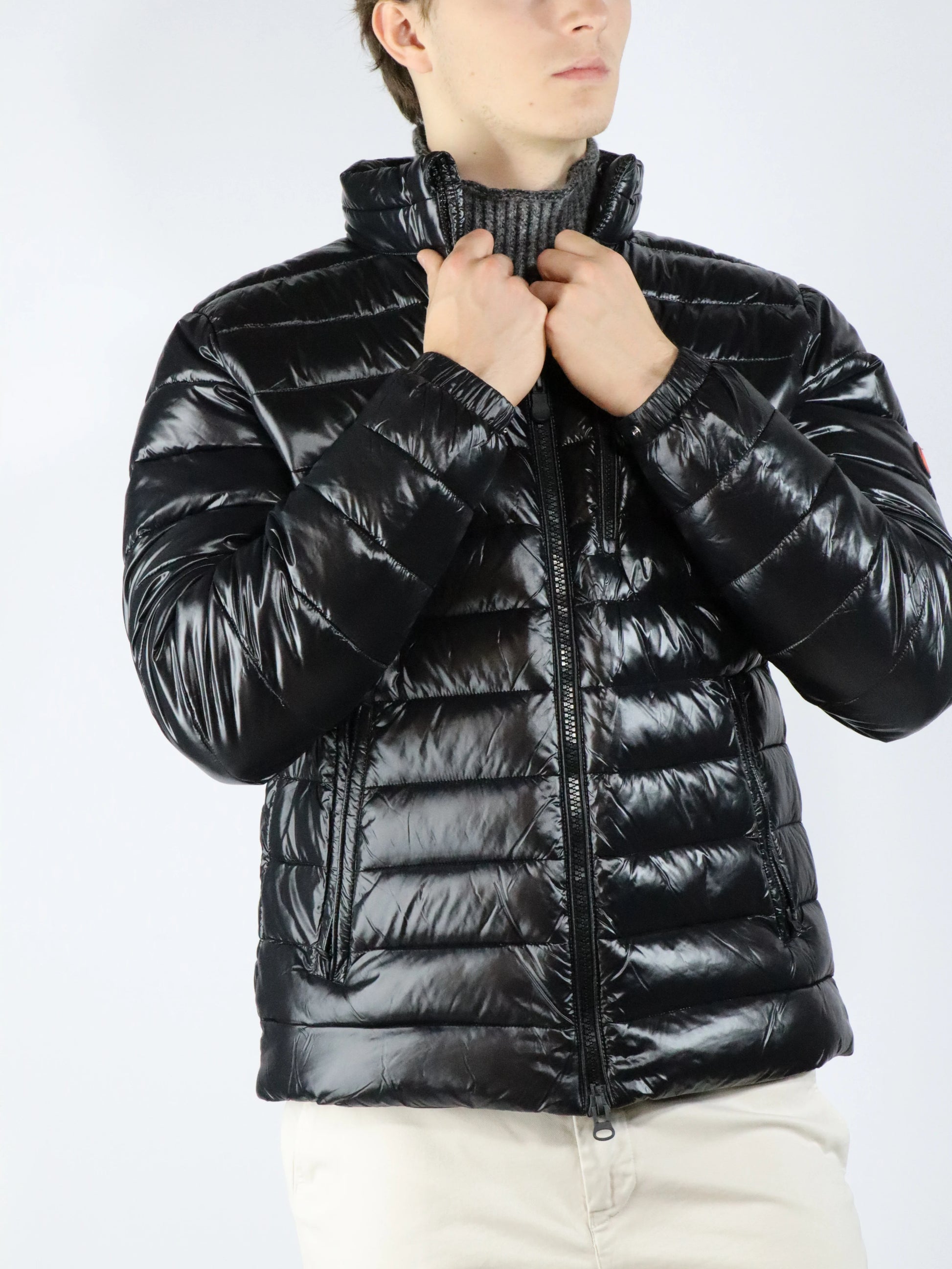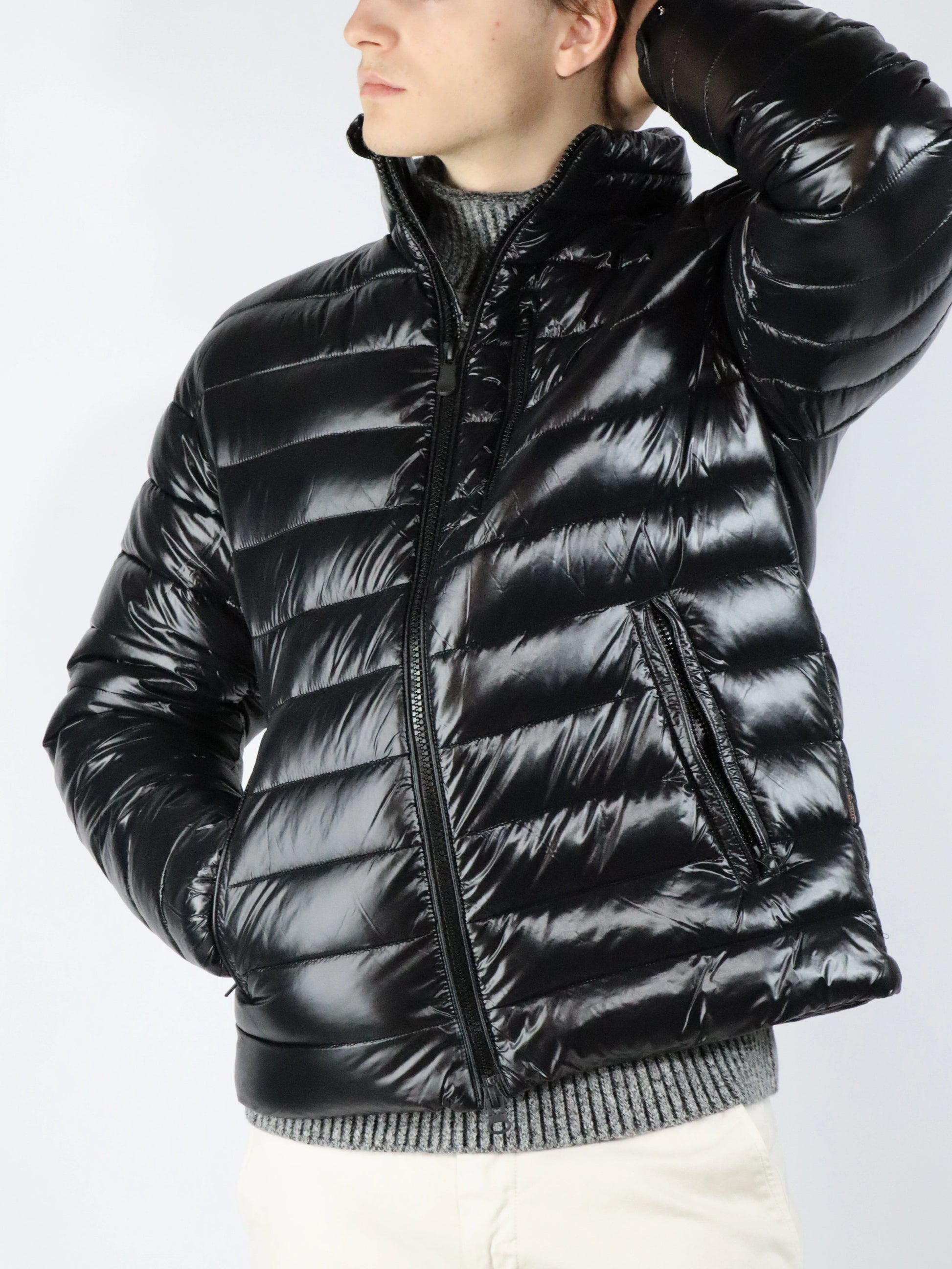 Tessuto in nylon riciclato al 100%, molto leggero e compatto, con una sensazione morbida e liscia al tatto. Ha eccellenti prestazioni "antivento", grazie alla sua struttura ad alta densità. La sua particolare finitura gli conferisce un effetto laccato.
