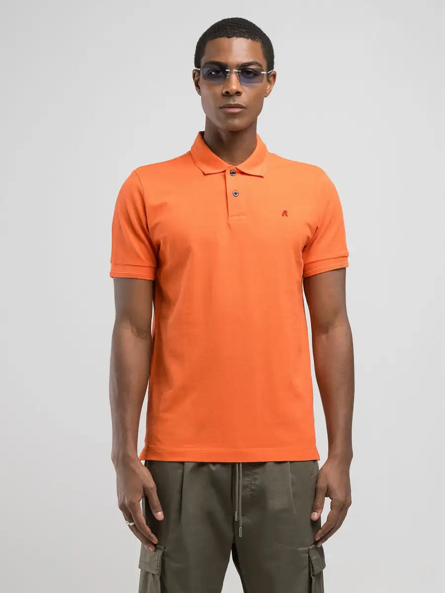 Polo da uomo regular fit in piquet di cotone tinto capo con abbottonatura a due bottoni. Questo capo a maniche corte presenta piccoli spacchi laterali sull'orlo e l'iconico ricamo R sul petto, un dettaglio distintivo di Replay.