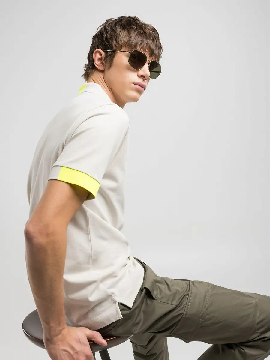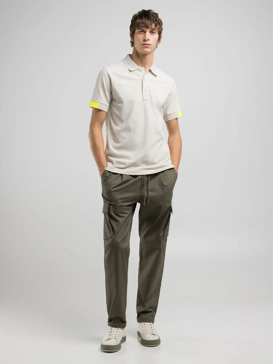 Polo da uomo regular fit in tessuto piquet di cotone elasticizzato, caratterizzata da inserti a contrasto sul retro del colletto e sulle maniche. Questo capo presenta un'abbottonatura con tre bottoni con logo, colletto e bordi delle maniche a costine e piccoli spacchi laterali sull'orlo. L'iconica R ricamata sul petto aggiunge il tocco finale al capo.