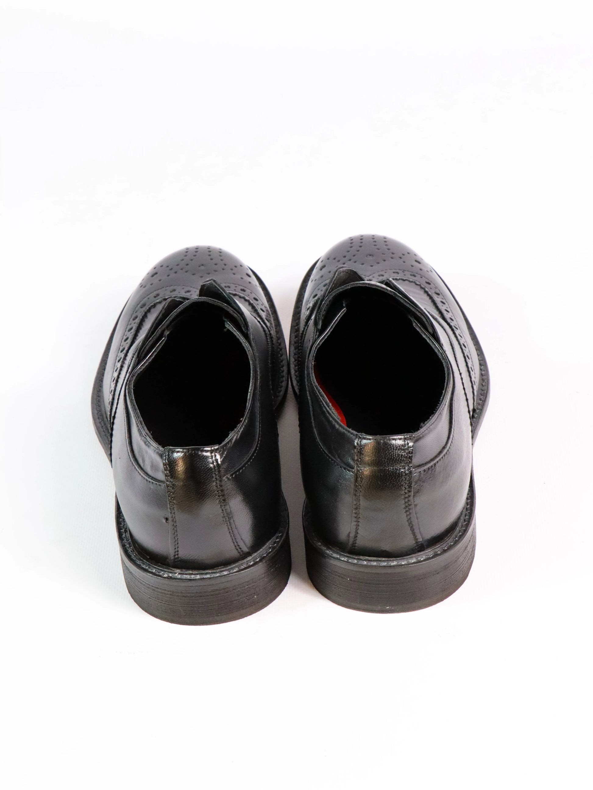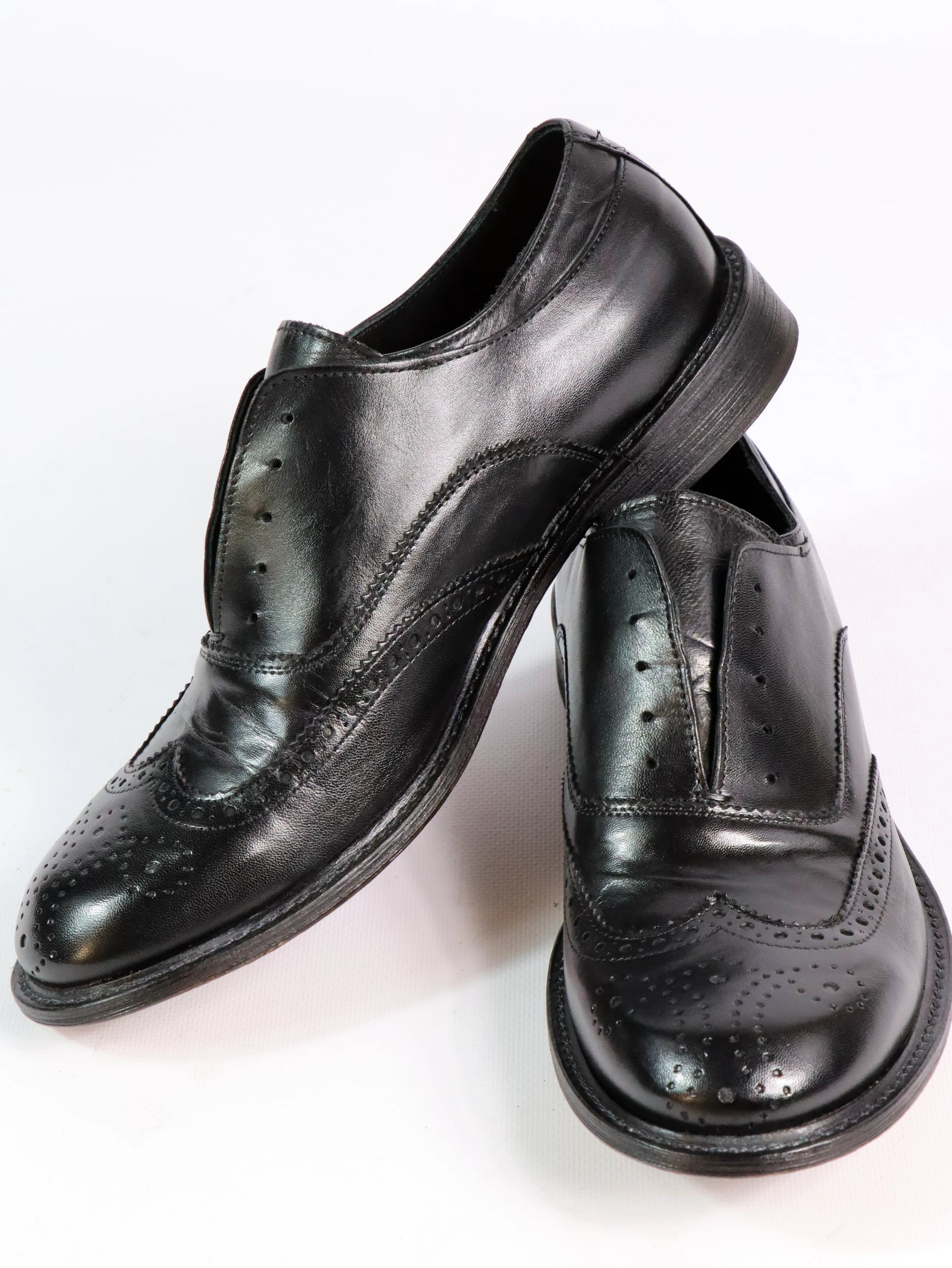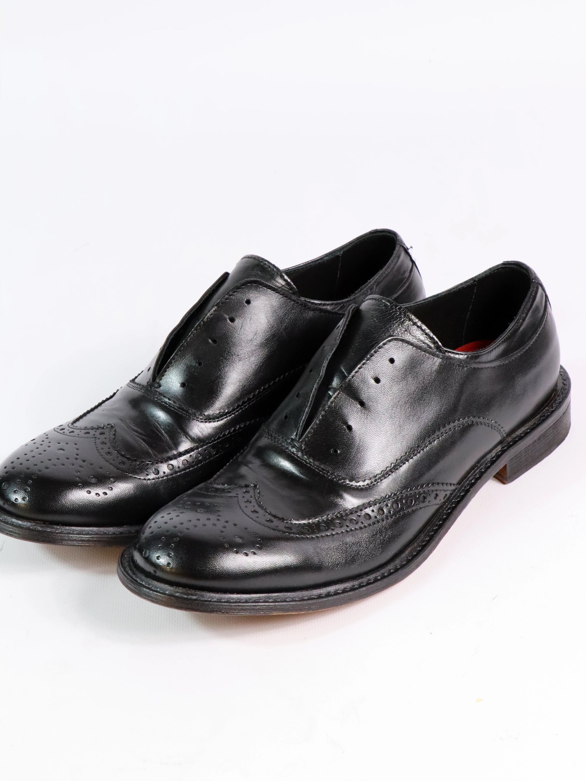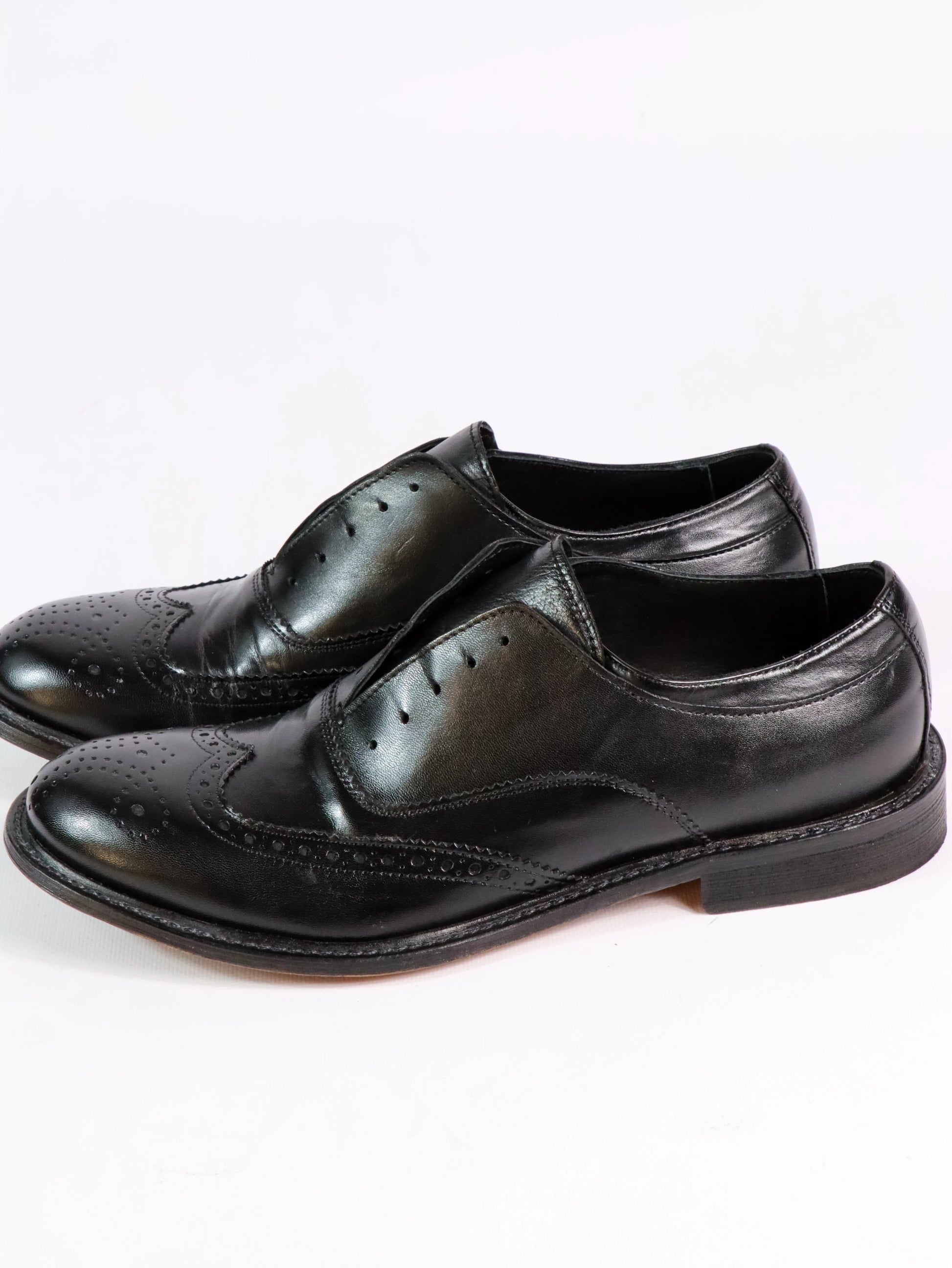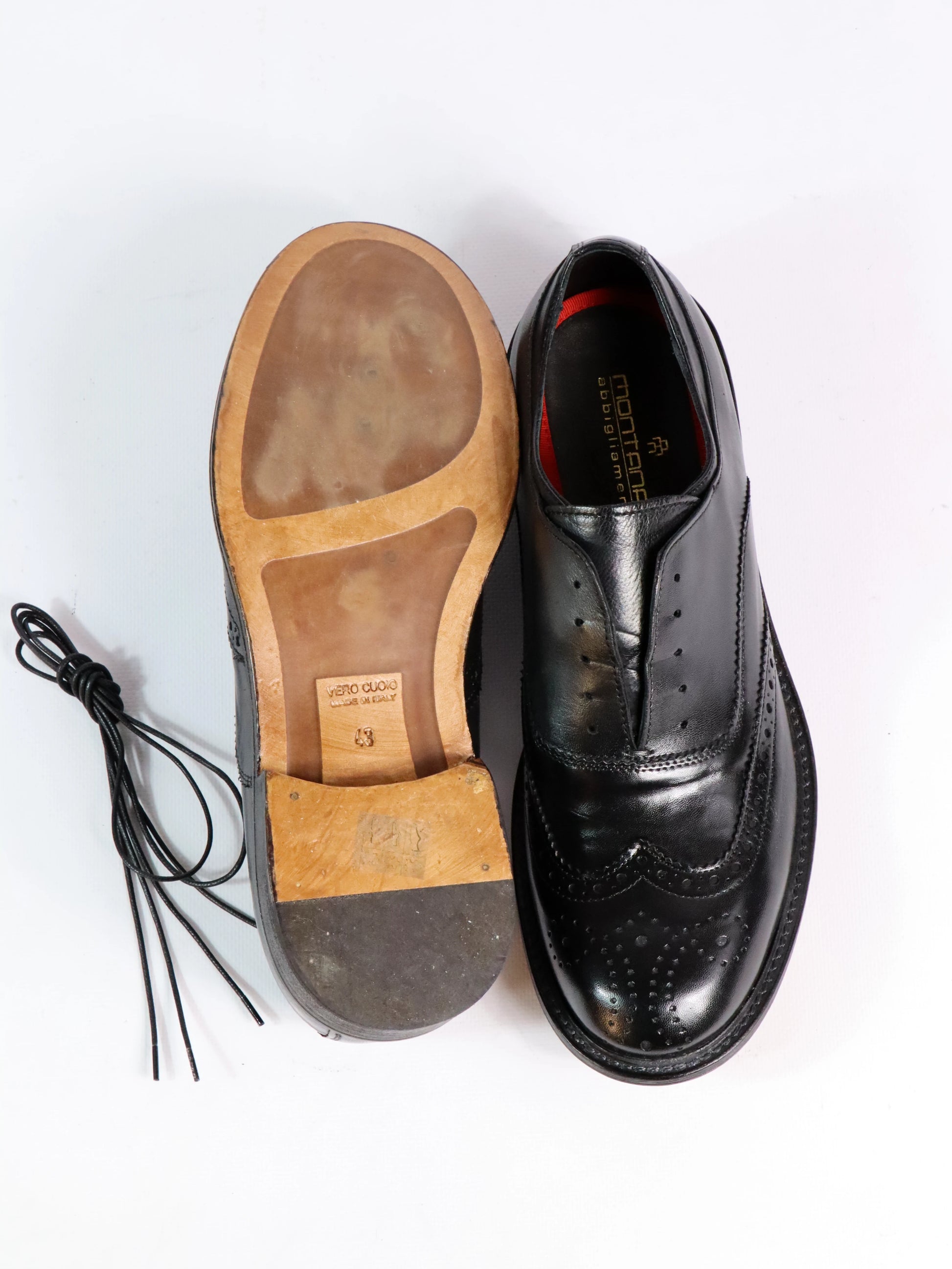 Scarpe nere in pelle con motivo a coda di rondine, suola in cuoio leggero, made in italy. Puo' essere utilizzata con o senza lacci.
