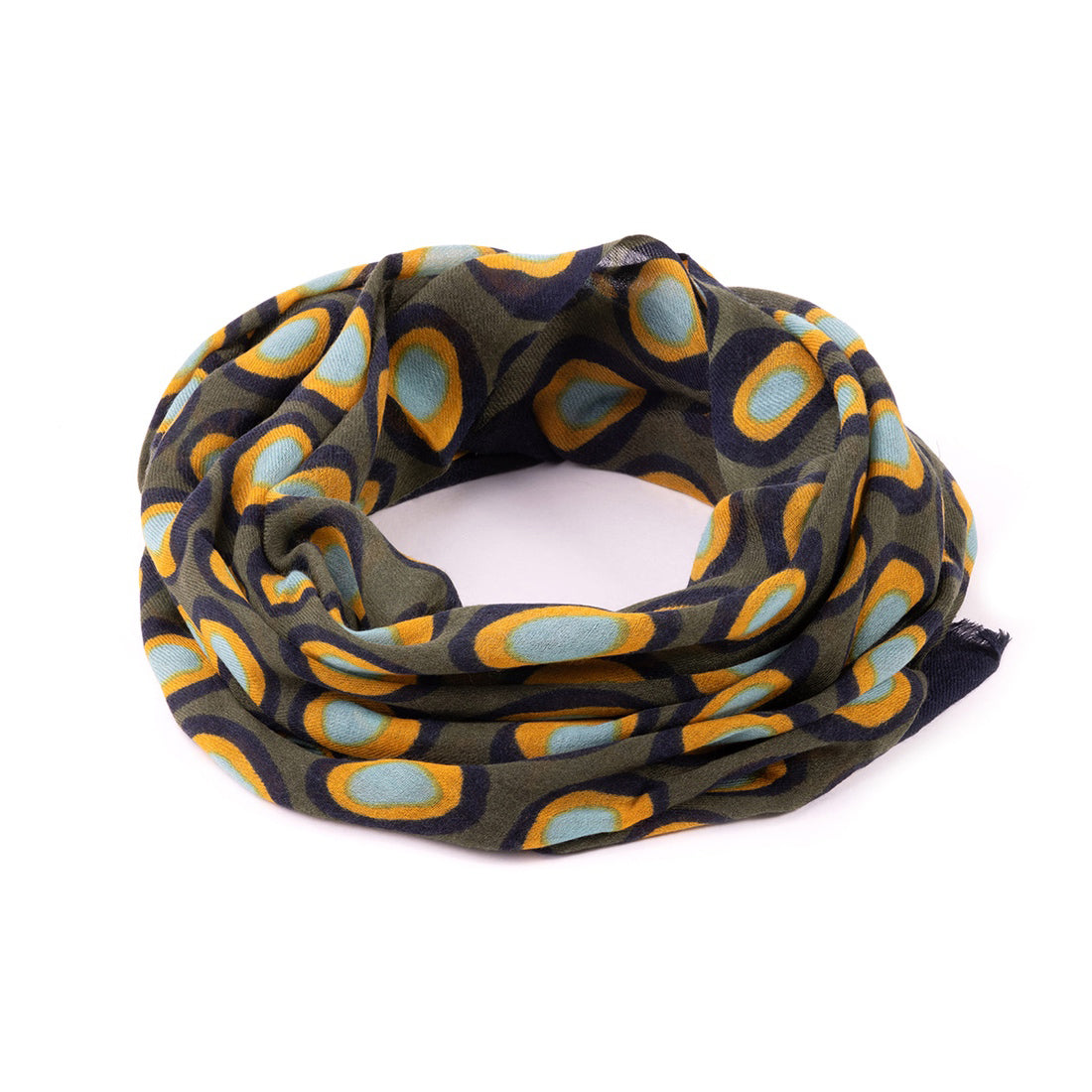 Sciarpa fantasia in 100% lana: dimensioni 70x180 cm. Packaging incluso.