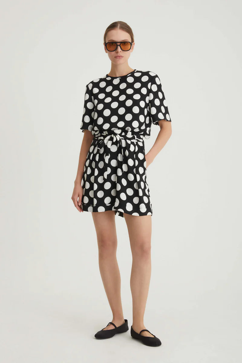Eleganti shorts, con vita elasticizzata caratterizzato da un fiocchetto modulare e risvolto cucito al fondo. Il modello è caratterizzato da una costruzione modellistica con tasche inserite nei fianchi che donano volume alla silhouette.