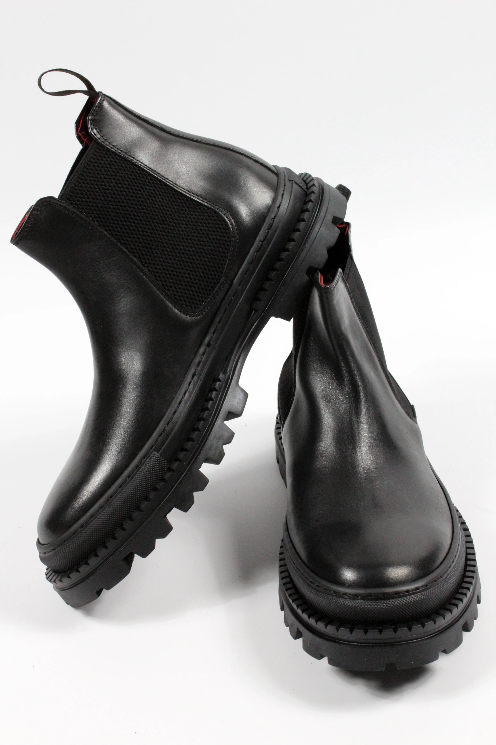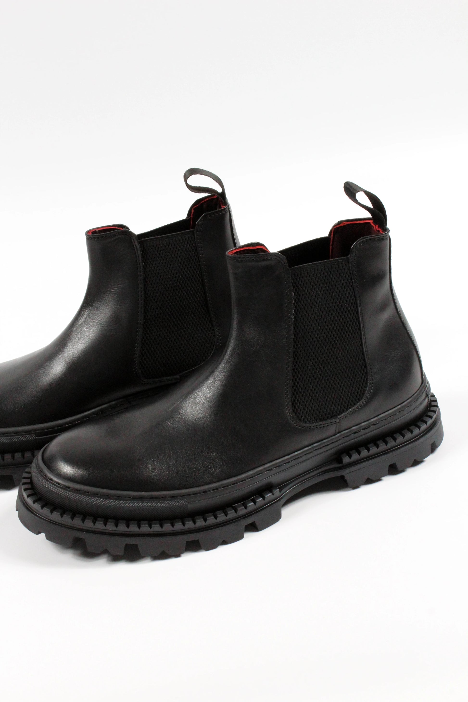 Stivaletto nero - chelsea boots in pelle di vitello liscio con fondo in gomma a carro armato, isola perfettamente dal freddo ed ha una perfetta tenuta su ogni terreno. Made in Italy. Calzata regolare.