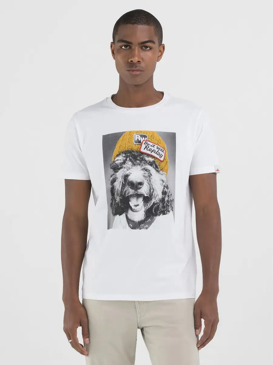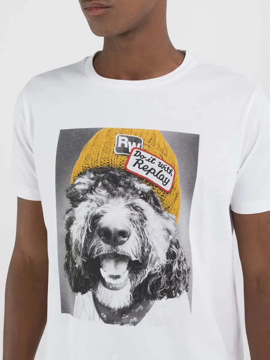 T-shirt girocollo dalla vestibilità regolare realizzata in jersey di puro cotone, garanzia di morbidezza e resistenza. La magliettaa maniche corte è caratterizzata da una divertente stampa fotografica personalizzata sul davanti. L’etichetta esterna logata sulla manica, espressione del DNA Replay, completa il capo.